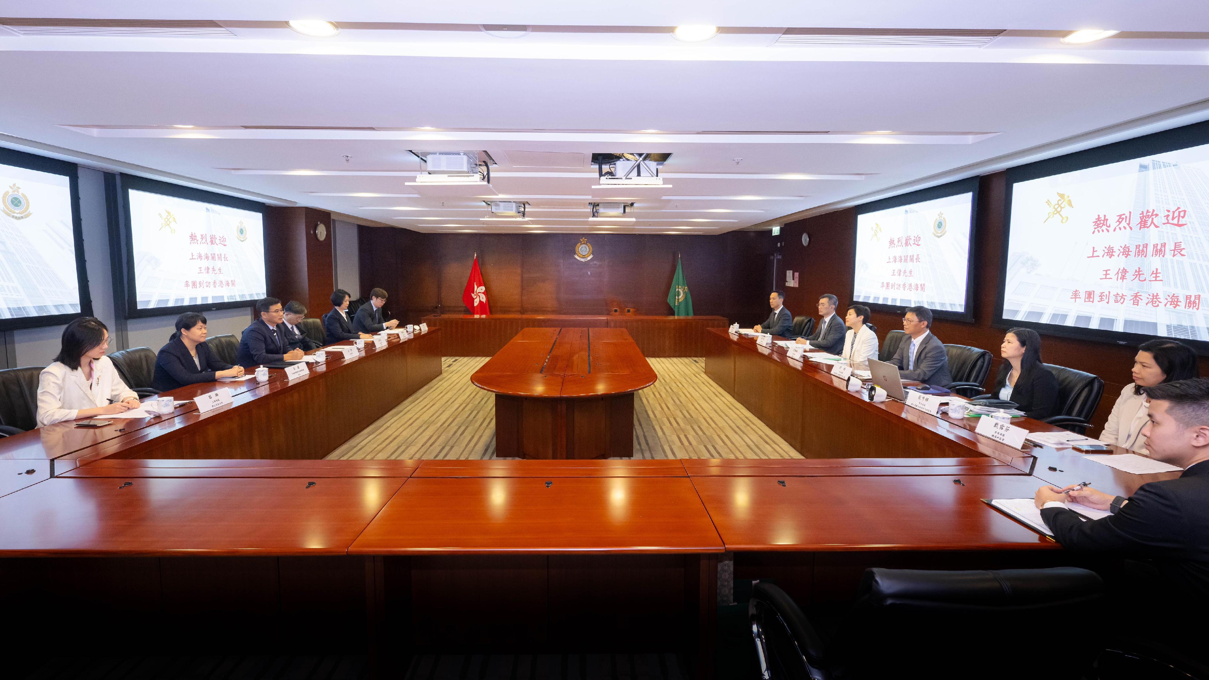 何珮珊歡迎王偉率領代表團到訪香港海關,並主持會議。雙方深入探討多項議題,包括推進智慧海關藍圖及相關的科技應用、擴建滬港海關大數據應用合作和加強風險管理合作,以全面提升兩地海關的協作領域。