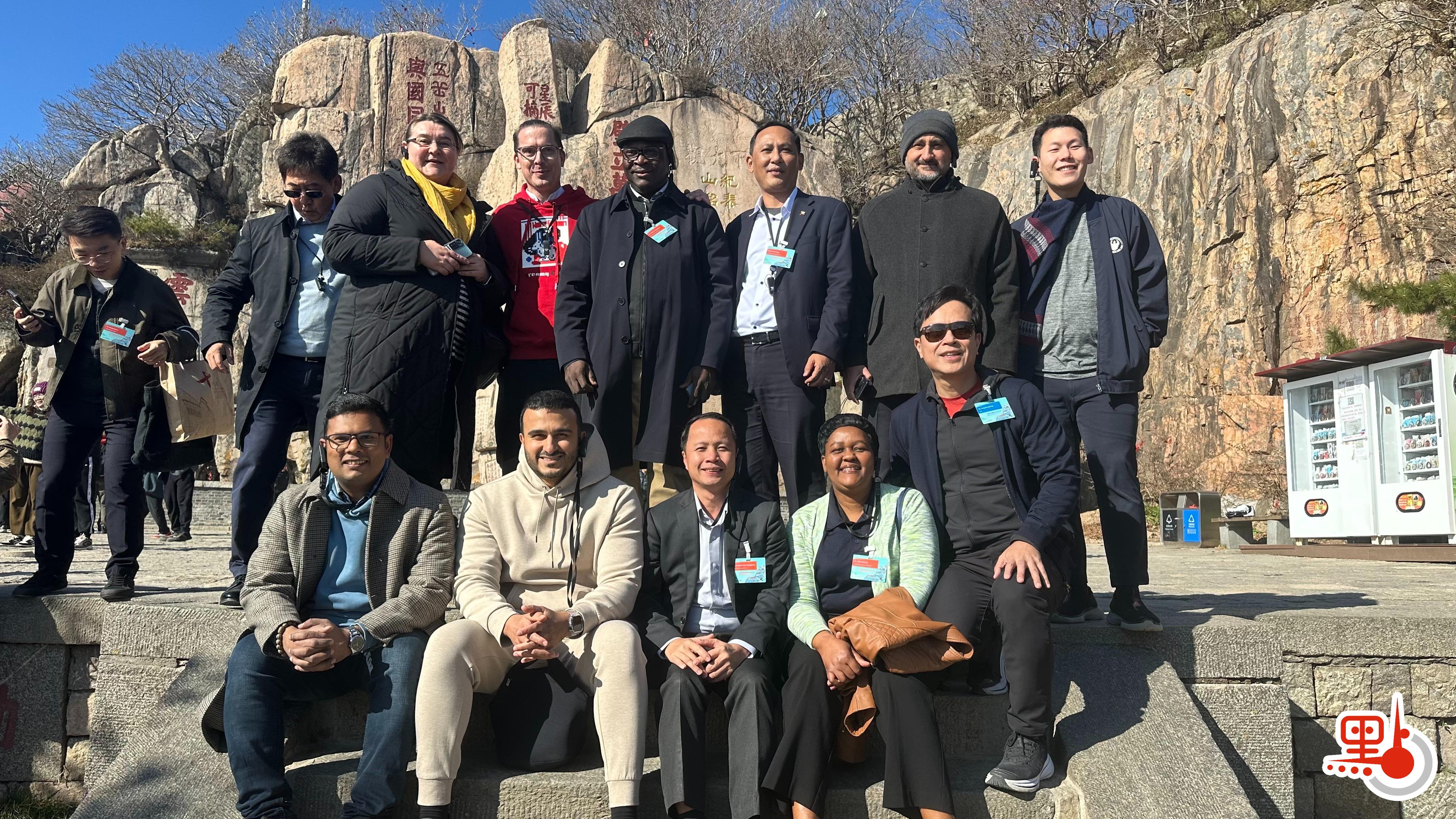 外國駐港領團和商界登泰山 持5元人民幣紙鈔打卡「五嶽獨尊」
