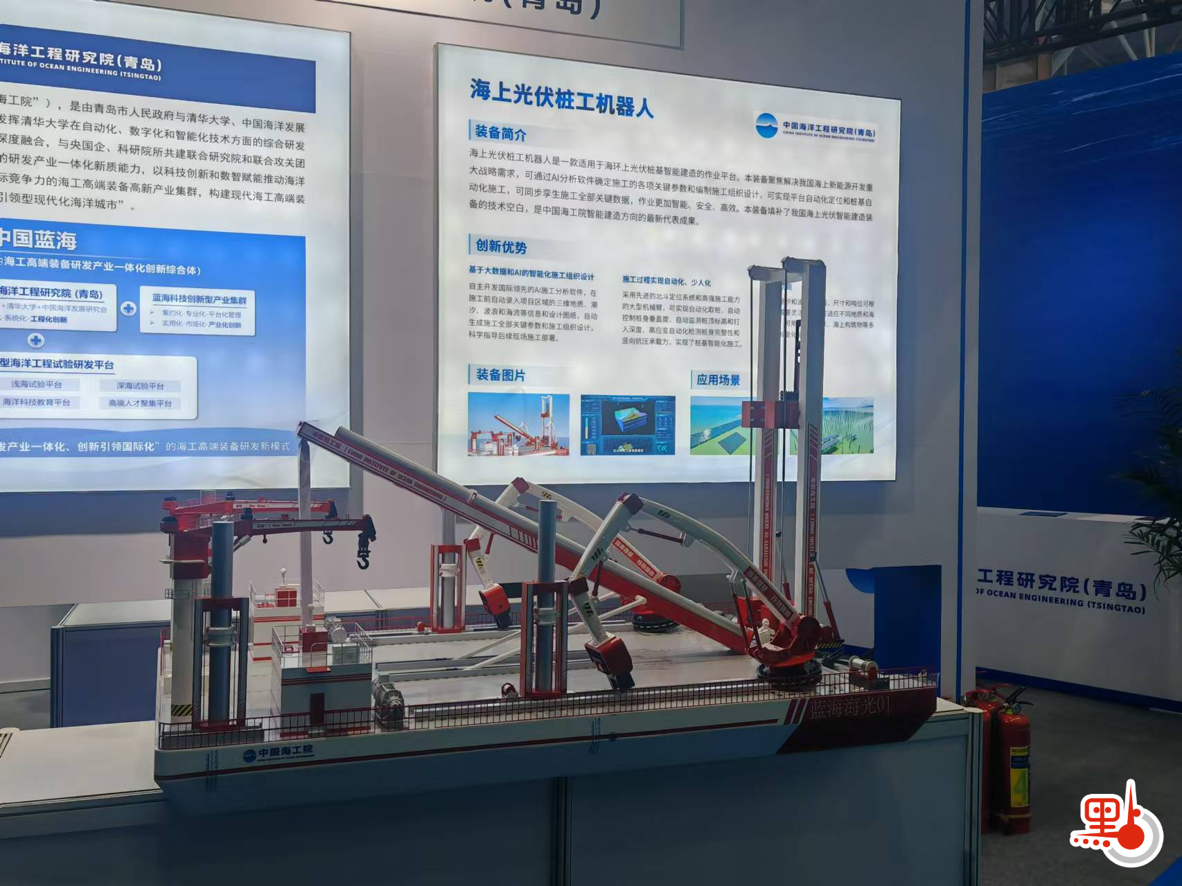 本屆海博會向海內外展示了中國海洋科技的一批新成果。海洋石油工程(青島)有限公司的全球首座10萬噸級深水半潛式生產儲油平台——「深海一號」能源站、自然資源部第一海洋研究所的新型海底長期駐留式AUV探測平台、哈爾濱工程大學的「星海」智能水下機器人、中國海洋工程研究院的海上光伏樁工機器人、山東海洋集團的首個國家深遠海綠色養殖試驗區「深藍2號」深水養殖網箱等紛紛在展會上亮相。