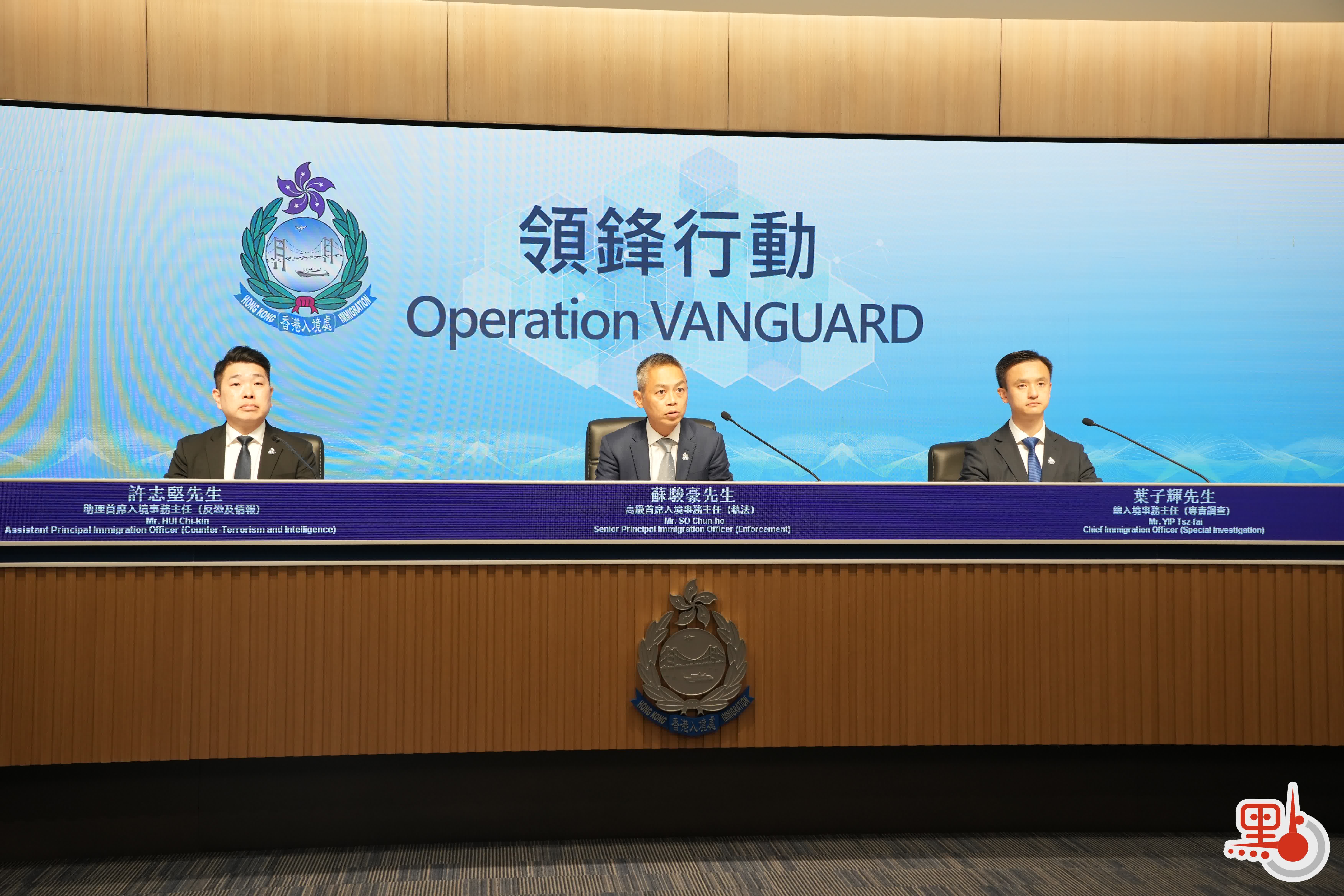 蘇駿豪介紹指,入境處一直與內地執法部門緊密聯繫,採取「情報主導」方式,打擊跨境出入境罪行,特別是涉及偽造證件和集團式運作的犯罪團夥。今年7至8月,在國家出入境管理局統籌下,入境處連同廣西、廣東公安出入境管理部門及深圳邊檢機關展開聯合行動,成功瓦解一個跨境偽證集團,整個行動中兩地共拘捕201人,檢獲大量製證設備和偽造證件。在香港代號「領鋒」的行動中,共拘捕97人,包括跨境集團在香港的主謀和骨幹成員。
