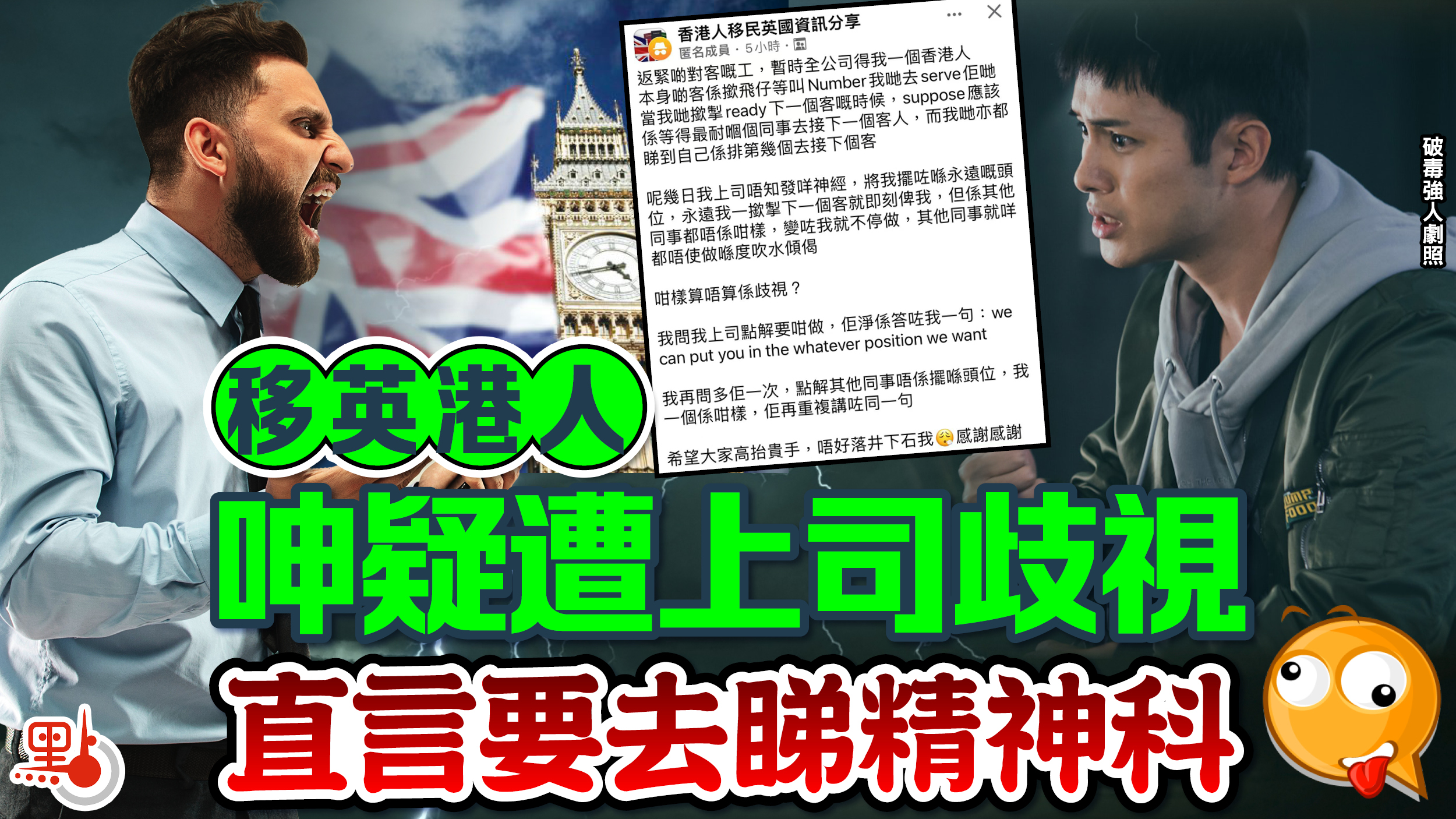 【點新聞報道】話說英國好多職場歧視,近日有移英港人在網上發文訴苦,話自己疑被上司歧視、針對,被差別待遇,心有不甘的樓主走去找上司對質,結果只換來對方敷衍打發,直言「我係咪應該要去睇精神科」。