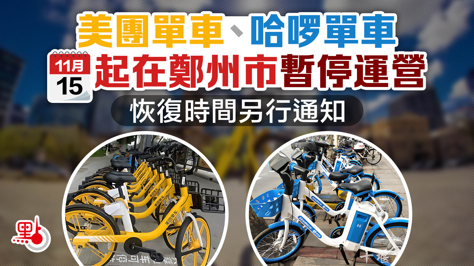 開封夜騎|美團及哈啰單車今起在鄭州暫停運營