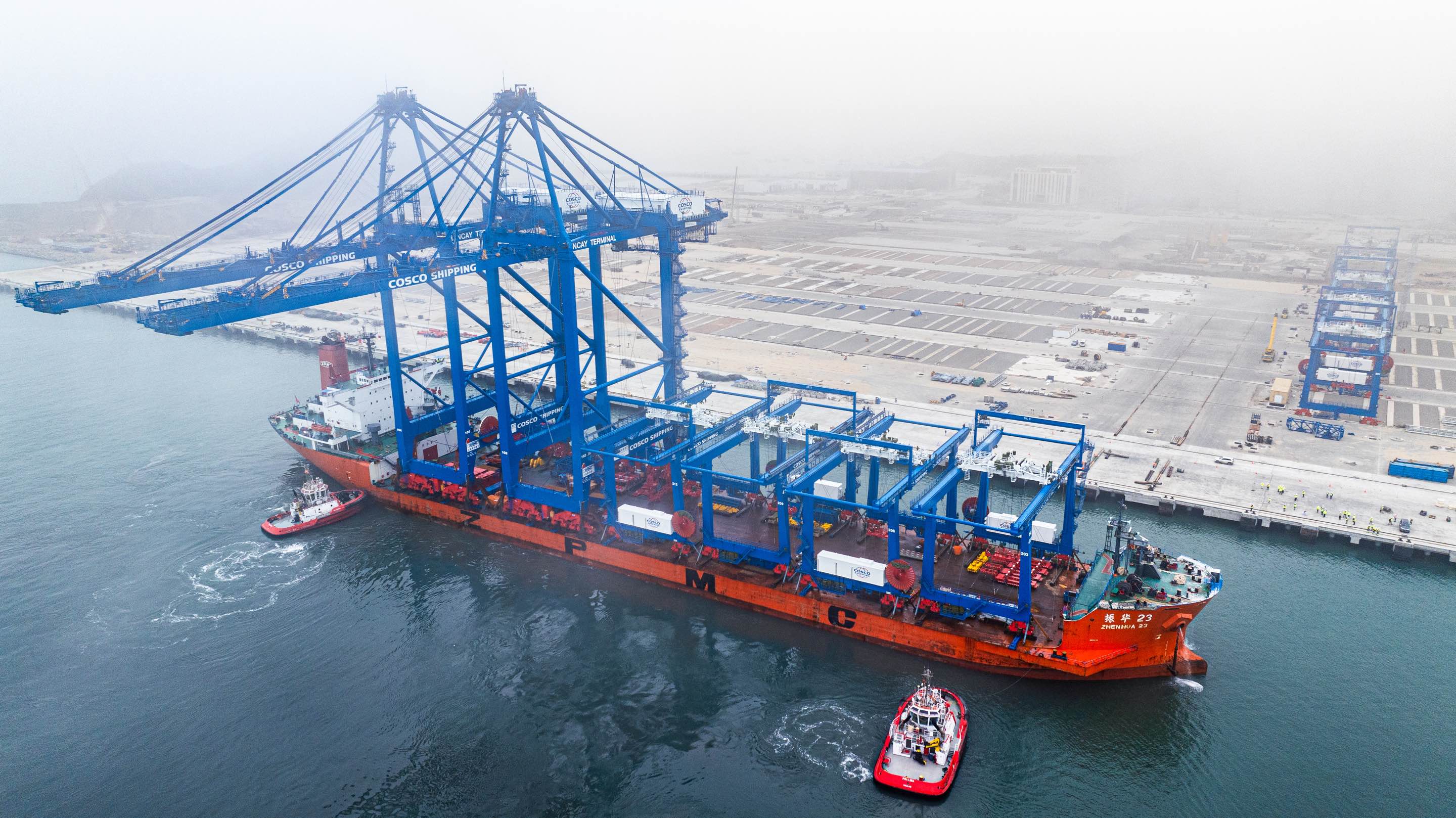 錢凱港位於秘魯瓦拉爾省錢凱區,距離首都利馬市約80公里。作為中秘高質量共建「一帶一路」合作的旗艦項目,錢凱港是由中國中遠海運承建的高容量港口,中遠海運取得獨家經營權。錢凱港項目一期工程始建於2021年,港口能停靠18000標準箱的超大型集裝箱船,可實現近期每年100萬、遠期150萬標準箱的設計吞吐能力。