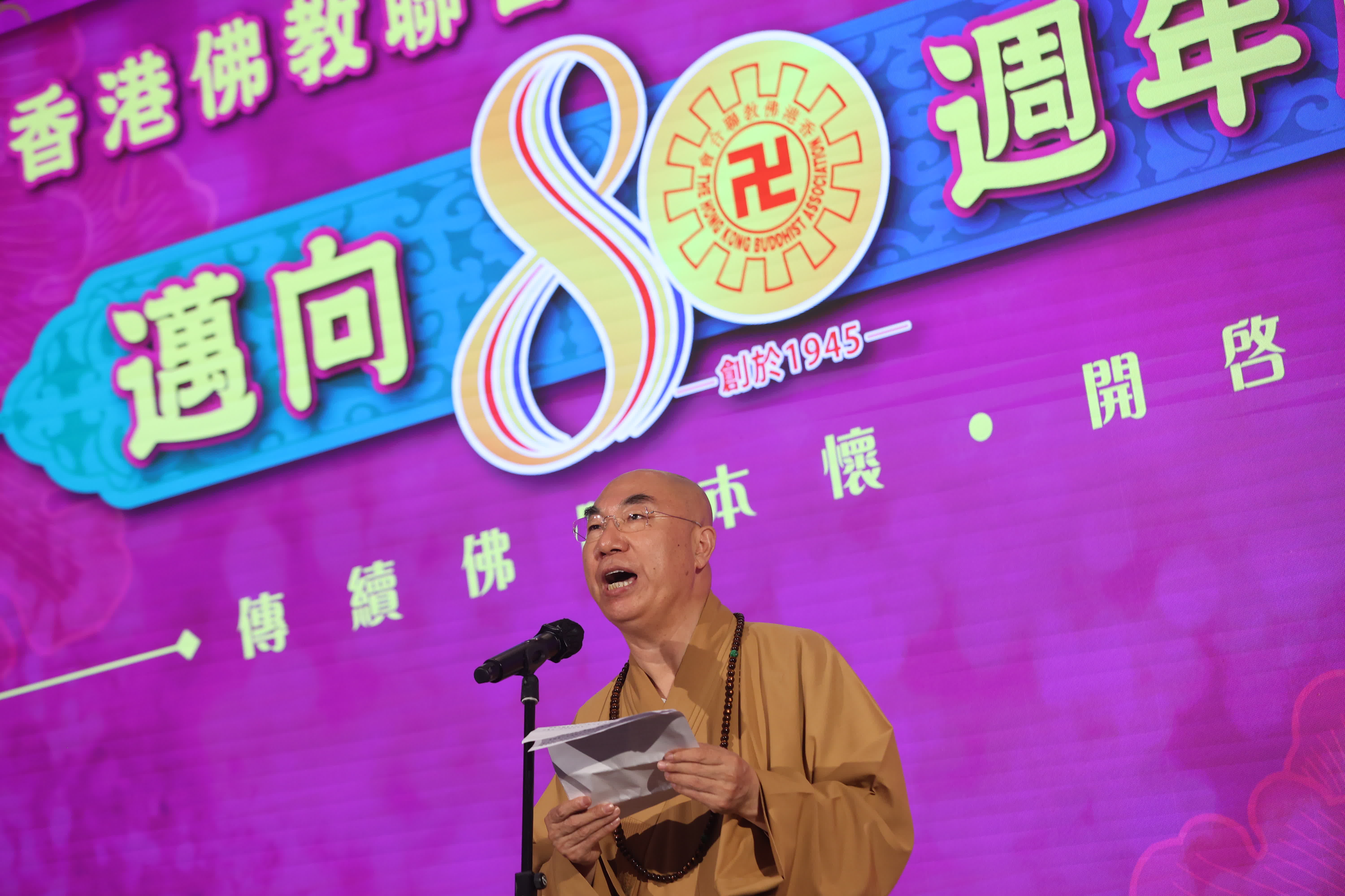 佛聯會會長寬運大和尚致辭時表示,佛聯會成立80周年,這是「一個開啟弘法新篇的里程碑」。展望未來,他希望未來佛教可以發揮更大的功能,作為佛教徒,應該有更大的抱負和理想,在開展社會服務、醫療服務、教育服務等後,佛教亦需要對於社會和諧、世界和平、環境保護、人的生活質素提升等持續關注,發揮出佛教應有的教化功能。