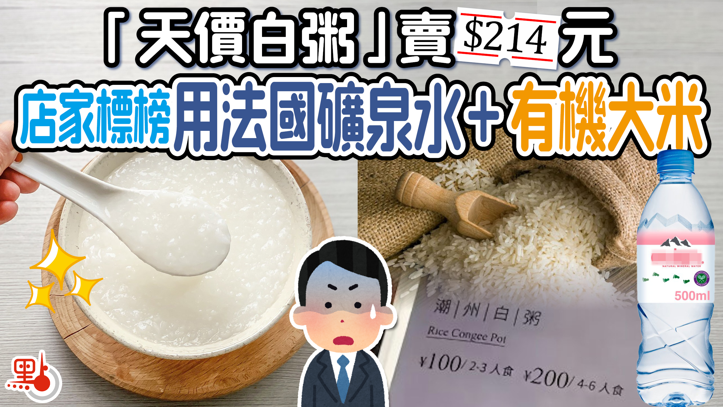 一名網民日前打算與朋友外出用餐,發現該店2至3人份「潮州白粥」,竟然要賣100元人民幣(約107港元),4至6人食用的份量則售200人民幣(約214港元)。店員表示這鍋白粥貴在於「人工熬煮」,且食材選用的是東北有機大米和阿爾卑斯山礦泉水,並強調「吃得出來不一樣」。最終網民和友人沒有進店消費就離開,「直接給我和我朋友勸退了」。