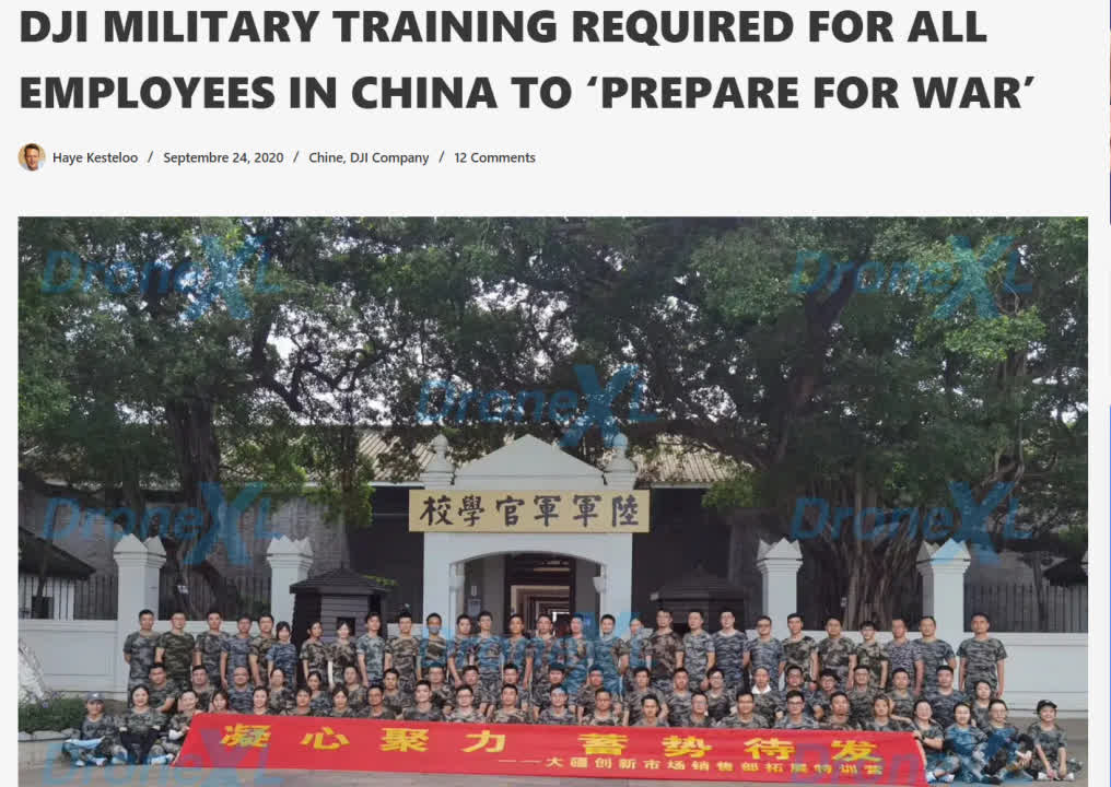 早在2020年,海恩就在自己創辦的「Drone XL」網頁上連發多篇文章,稱大疆的團建活動旨在「讓全體員工隨時準備戰爭」,前面提到的照片就曾是他給出的「證據」。不久後,大疆公司就發文澄清了海恩的無稽之談。
