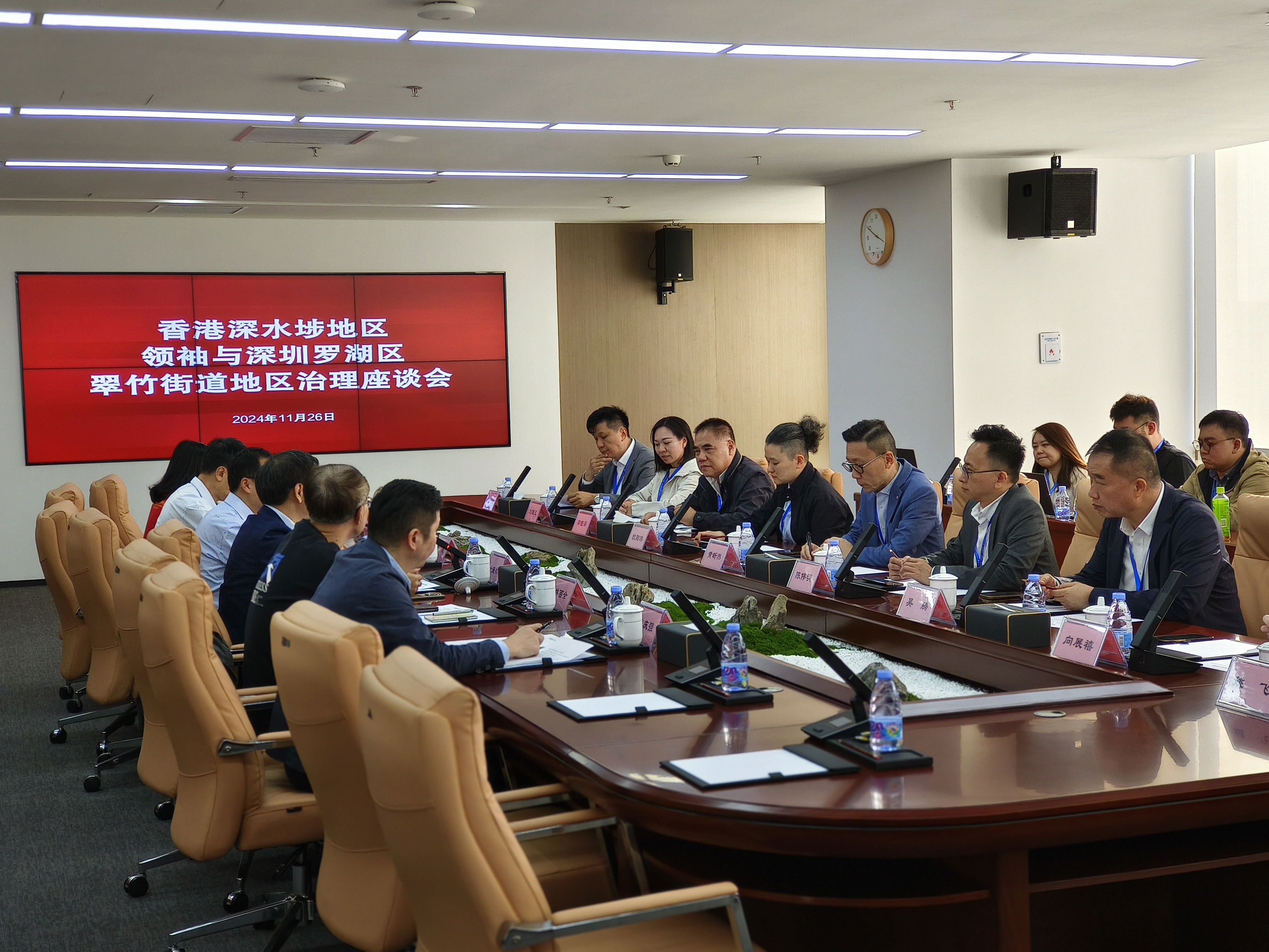 翠竹街道辦黨工委書記及辦事處主任戴雁及翠竹社區黨委書記李暉暉分別向團員介紹街道辦以多個層級結構及網格化管理以調解、鼓勵參與等的地區治理模式,盡可能以社區層級為居民解決問題,縱使遇上重大公用項目損毀維修的問題,亦以不超於一小時接單為目標,協調公營單位盡快維修解決,減少對居民業戶影響。面對欠缺物業管理的大廈,則以應急物業管理計劃支援機制提供短期需付費的基本物業管理工作,並協助業主成立業主委員會、聘用物業管理公司以解決管理問題。座談會上還就一些與舊樓相關的常見問題例如單位滲水處理,拖欠管理費等作出充分的交流。