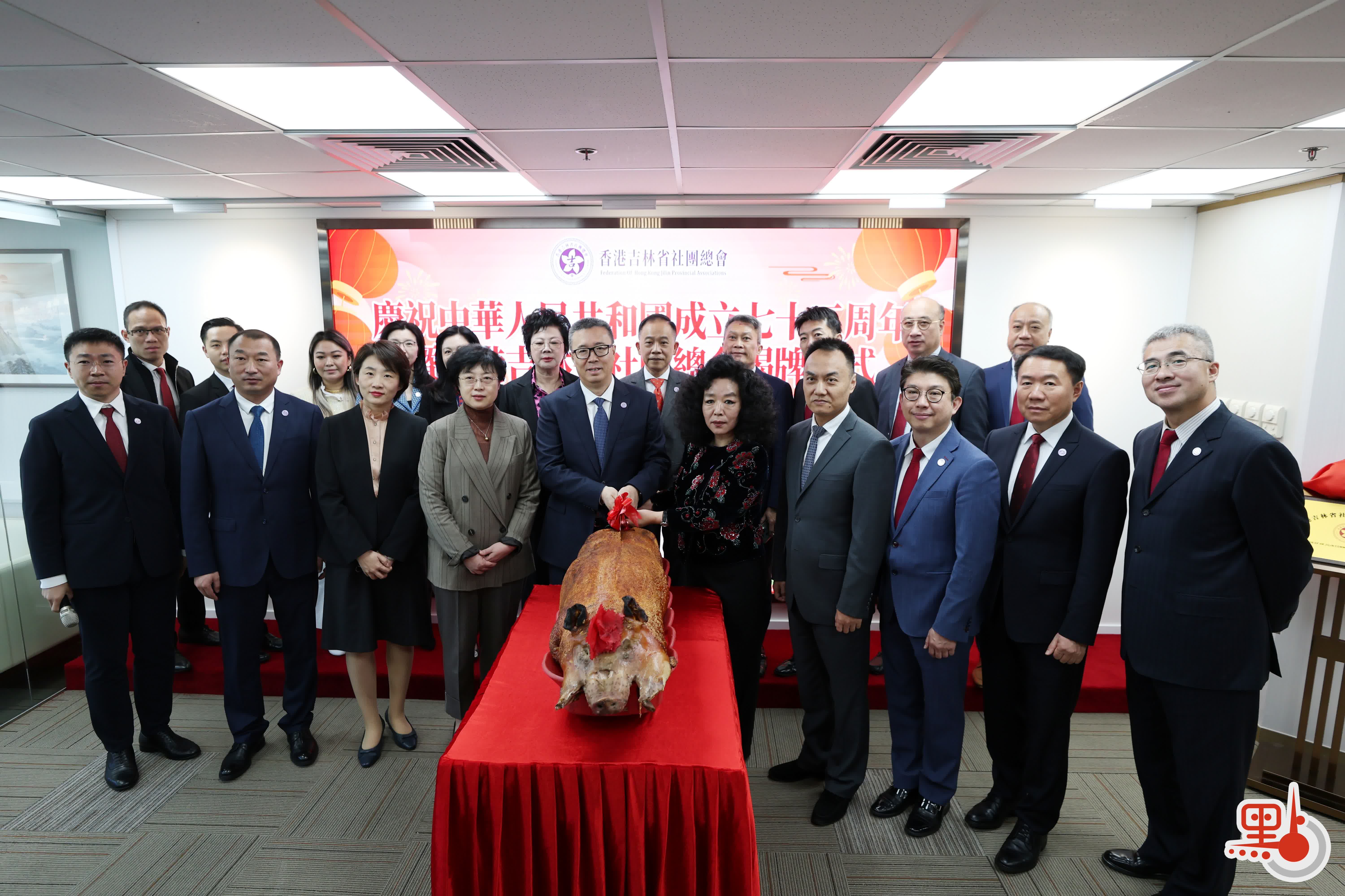 吉林省委統戰部副部長、省僑辦主任辛靜,中央政府駐港聯絡辦社聯部副部長、一級巡視員余學傑等嘉賓,以及總會常務副會長、監事長等齊聚一堂,一起進行了「切金豬」儀式,共同祝願總會越來越好。