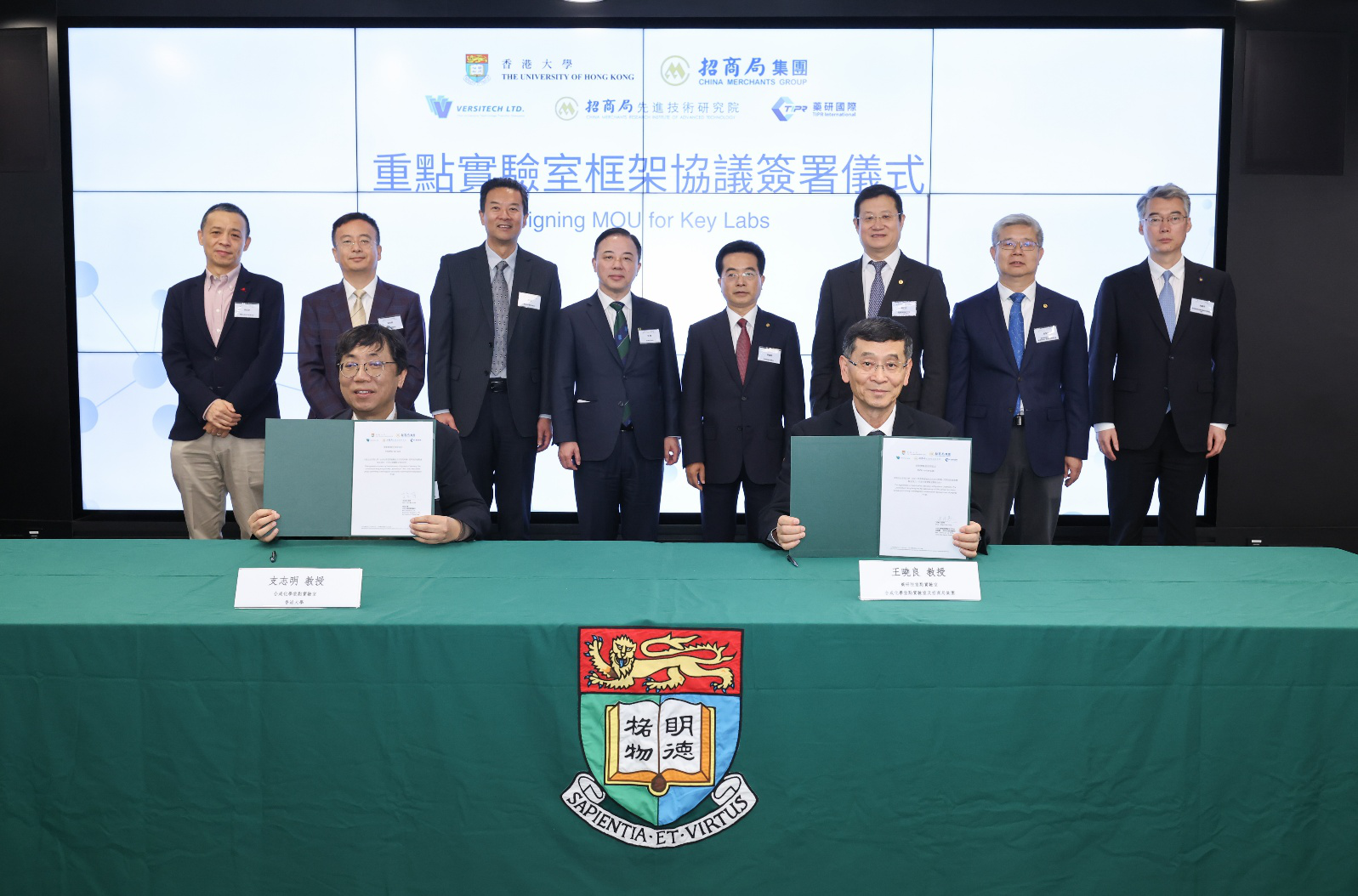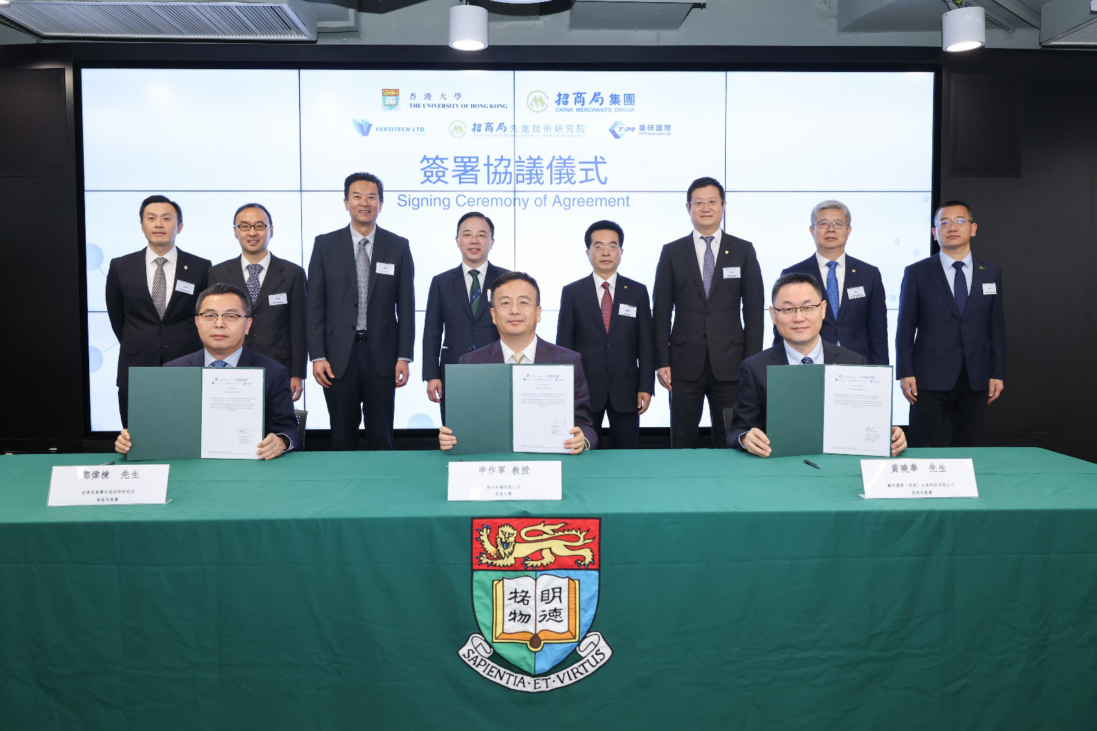 本次簽約儀式在港大校園舉行,港大校長張翔和招商局集團董事長繆建民出席儀式並致辭。其他出席嘉賓包括港大副校長(研究)申作軍、理學院院長周強、合成化學國家重點實驗室支志明、理學院副院長李學臣,以及招商局集團副總經理、招商創科董事長鄧仁傑,集團總經理助理兼董事會秘書、集團辦公室主任張軍立。