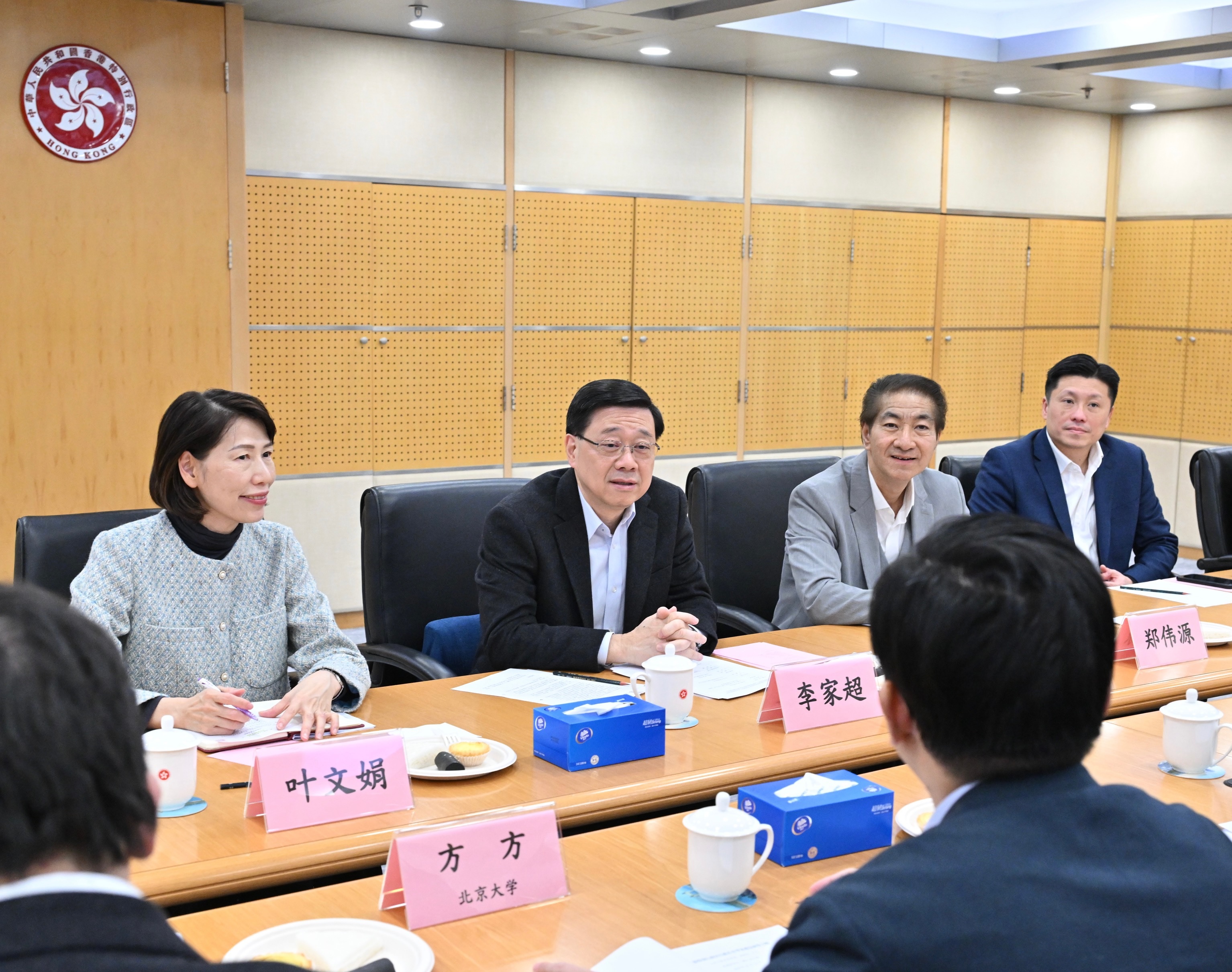 李家超今日亦與「高端人才通行證計劃」下的北京高校代表會面,當中包括中國人民大學校長林尚立、北京大學副校長方方、清華大學副校長楊斌、北京師範大學副校長陳興、北京航空航天大學副校長呂衛鋒和北京理工大學副校長魏一鳴。