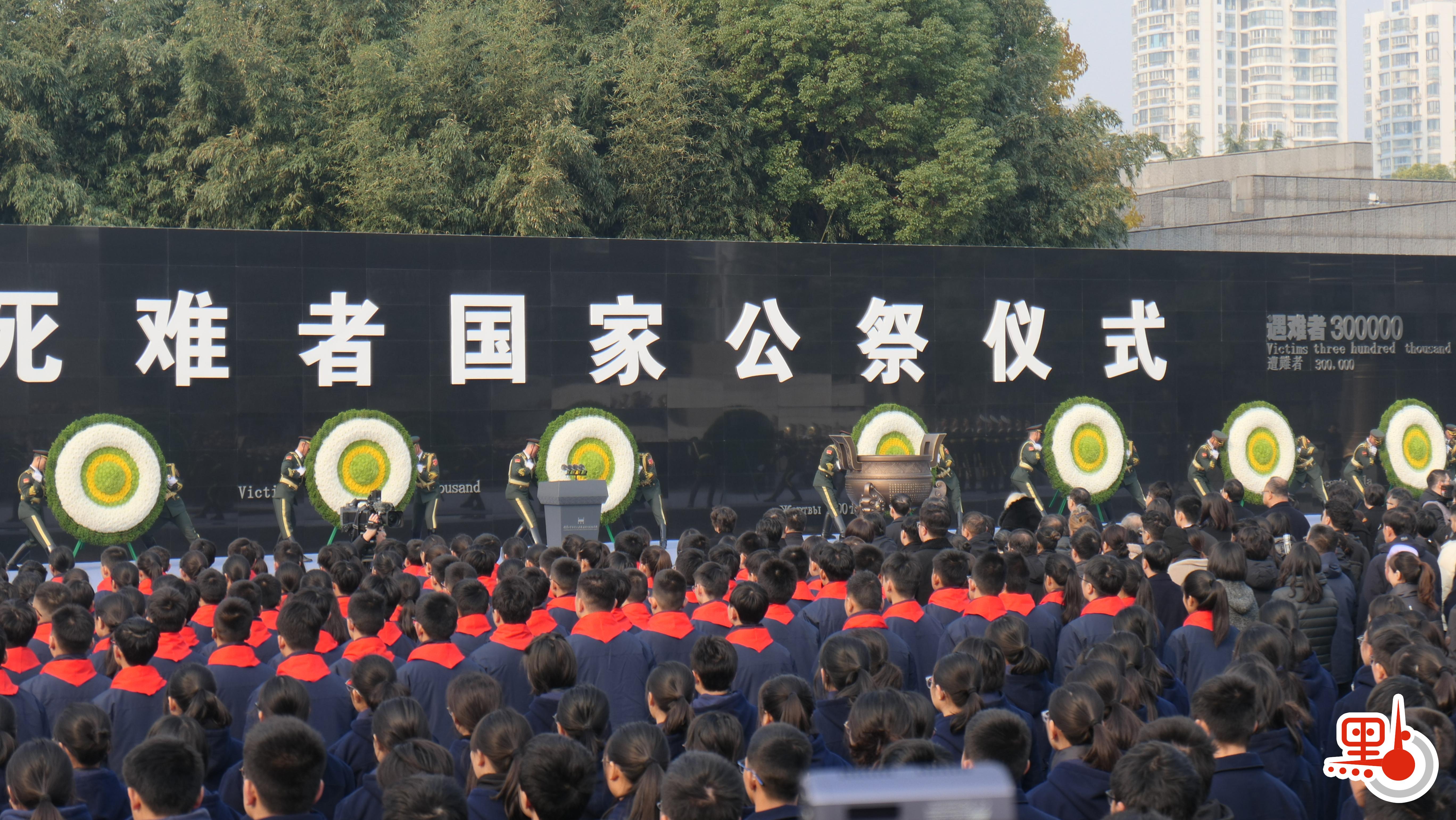 隨後,解放軍儀仗隊向死難同胞敬獻花圈,中共中央政治局委員、中宣部部長李書磊發表講話。講話結束後,南京市青少年代表宣讀《和平宣言》,中國國家游泳隊運動員、世界冠軍張雨霏,南京醫科大學第二附屬醫院院長李慶國等6名代表撞響「和平大鐘」。現場放飛3000隻和平鴿,祈求世界和平。