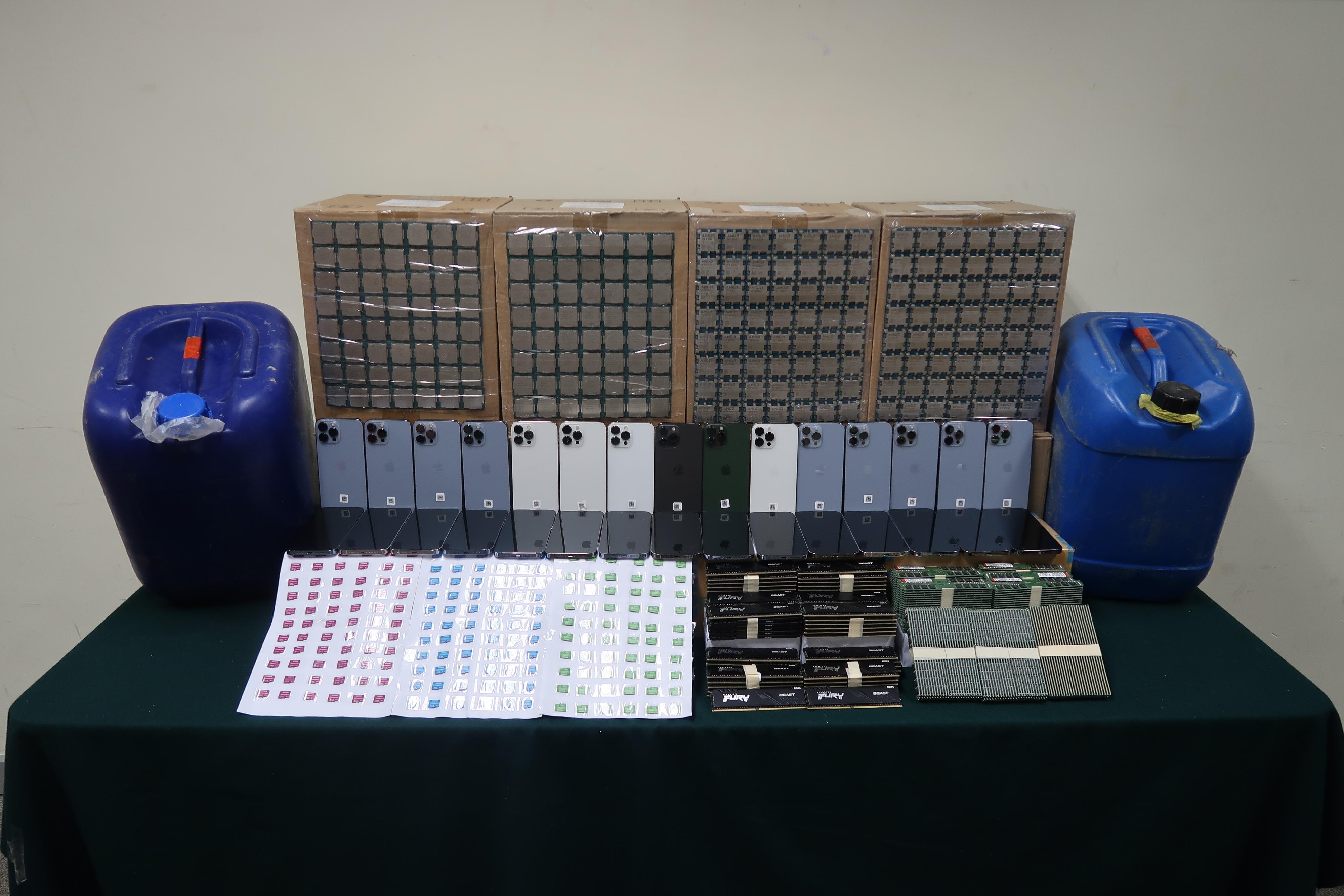 行動中,海關檢獲約8100件全新電子零件和約90部舊手提電話,市值共約690萬元。案件仍在調查中。