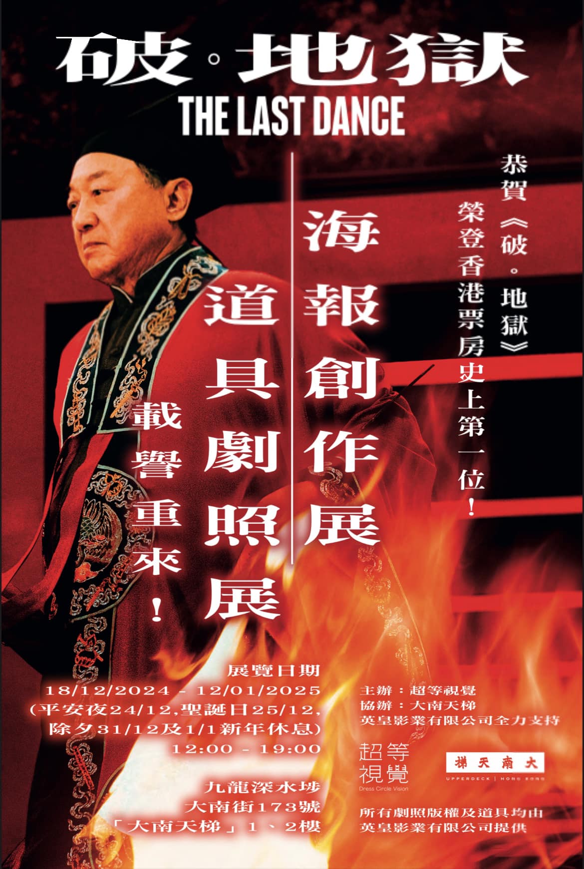 【點新聞報道】《破·地獄》展覽早前在「大南天梯」舉行,日日都人山人海。近日展覽載譽歸來,即日起至明年1月12日繼續在深水埗大南街「大南天梯」展出。本次展覽除了加入新的展品,還會陸續舉辦電影台前幕後講座及分享會。