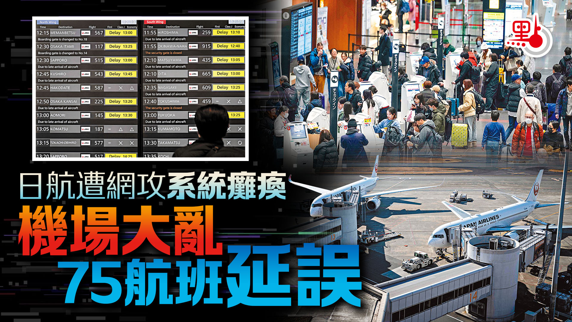 日航遭網攻系統癱瘓 機場大亂 75航班延誤