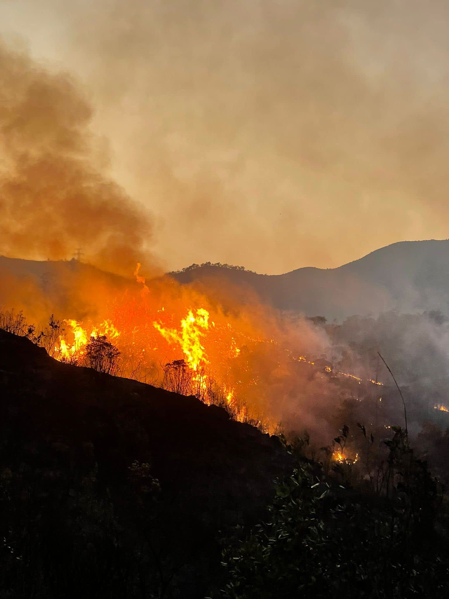 現場圖片及影片可見,濃煙直衝半空,山腰至山頂位置均竄出火舌。政府飛行服務隊直升機到場協助撲救,投擲水彈。
