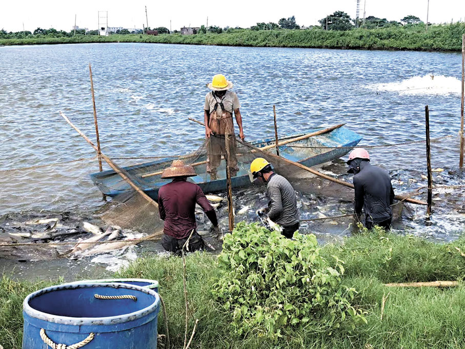 清晨6點多,晨曦初現。寒風中,廣東陽江波光粼粼的魚塘岸邊,連片的漁網隨風擺動。幾名穿着防水服的漁農,戴着斗笠帽,半個身子都泡在水裏,雙手靈巧地在圍網內捕撈活蹦亂跳的鯇魚。這是廣東重要的供港水產品企業——陽江市永興水產養殖有限公司養殖魚塘的日常場景,即使是在春節假期,這些工人依然會在水中忙碌,捕撈新鮮的水產來供應香港。公司負責人黃創智告訴香港文匯報,公司每年供應香港市場的鮮活水產品約1,000噸,以淡水魚為主。企業養殖的魚類品種多樣,包括鯇魚、鯽魚、大頭魚、金鯧魚和鰻魚等。