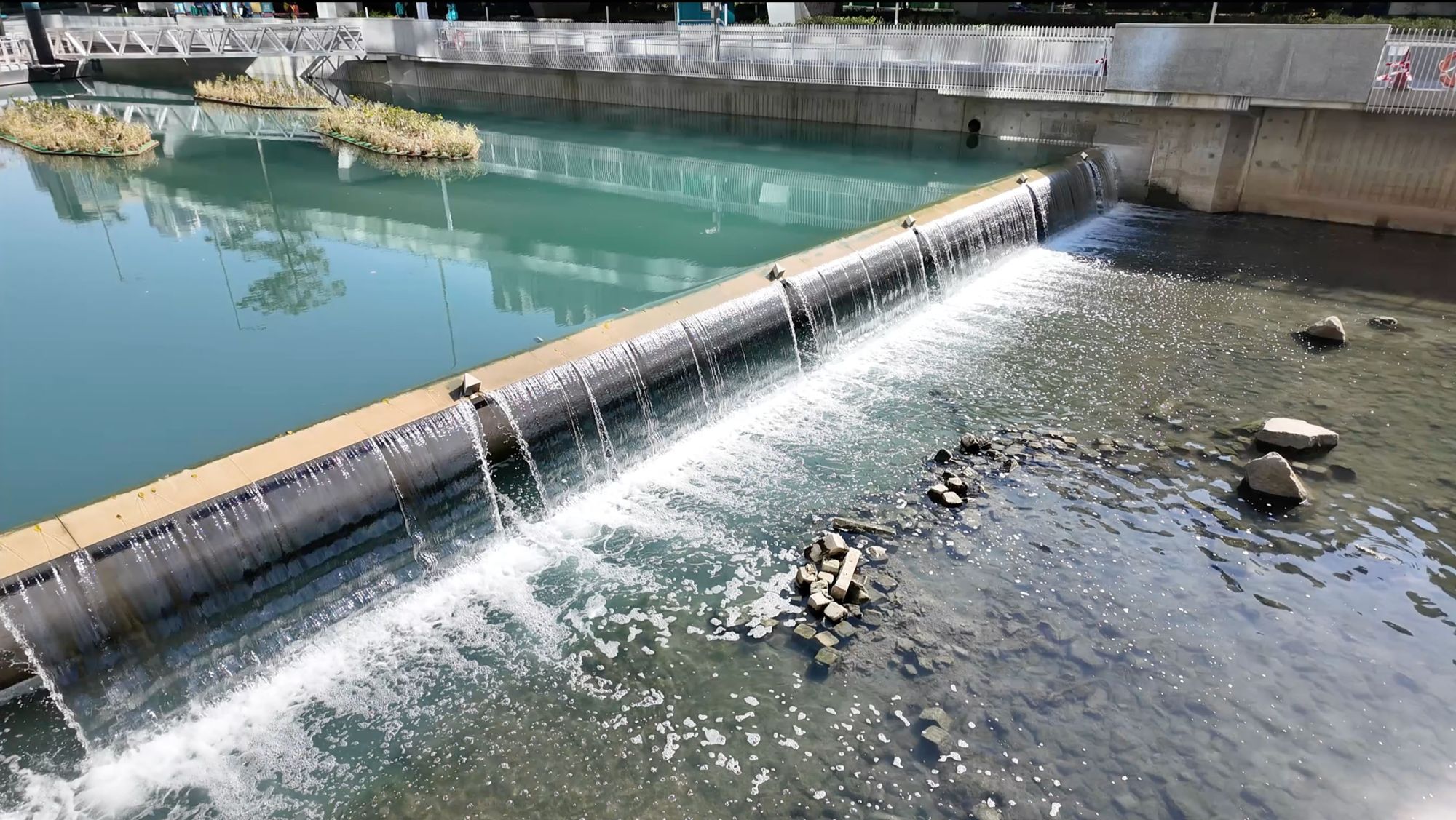 為了美化河道景觀,渠務署在隨水位高低而升降的浮島上設置特色漏鬥型花盆及座位,為市民提供獨特的近水體驗。河道亦栽種植物和設置生態裝置,創造有利生態的環境。