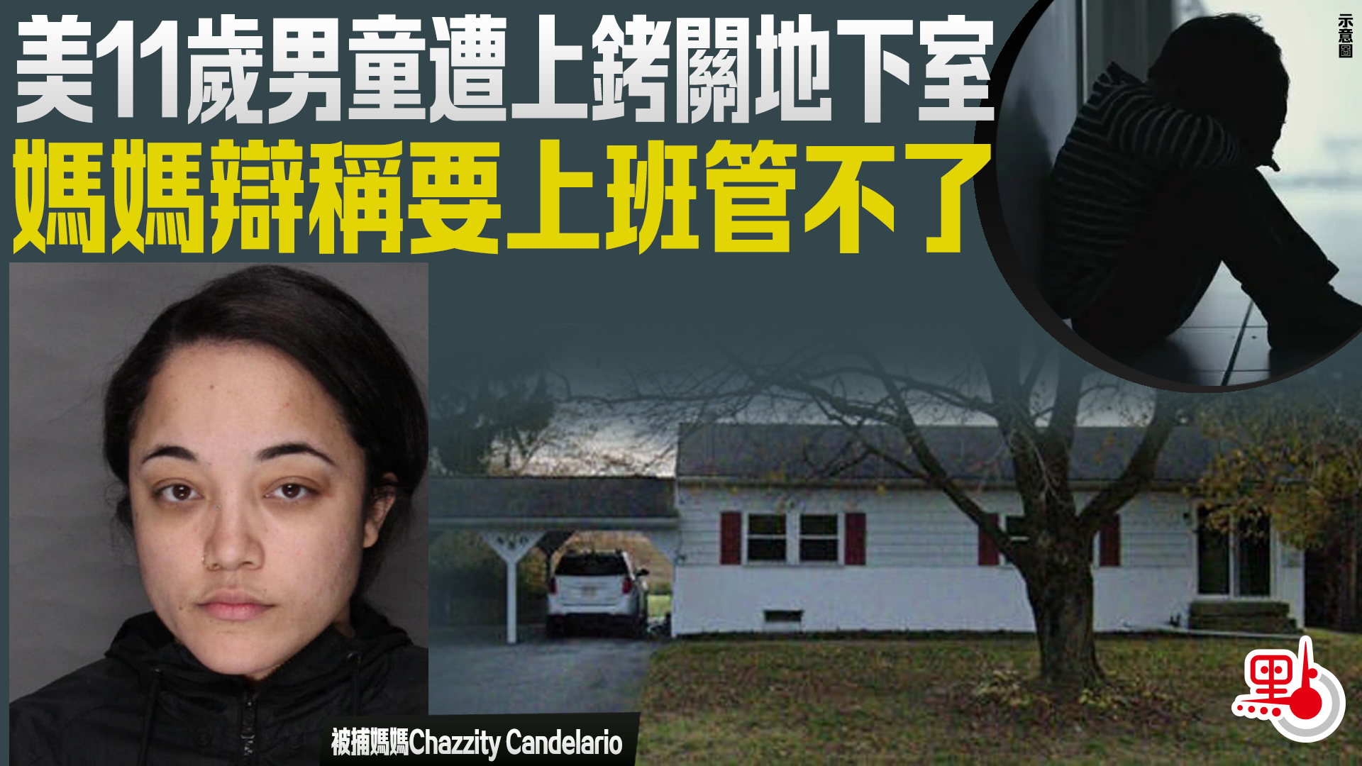 【點新聞報道】美國賓夕法尼亞州一名11歲男童,日前被媽媽上銬囚禁在地下室,媽媽表示因為自己要工作,無法照顧小孩,所以才這麼做。母親涉非法監禁等罪名被捕。