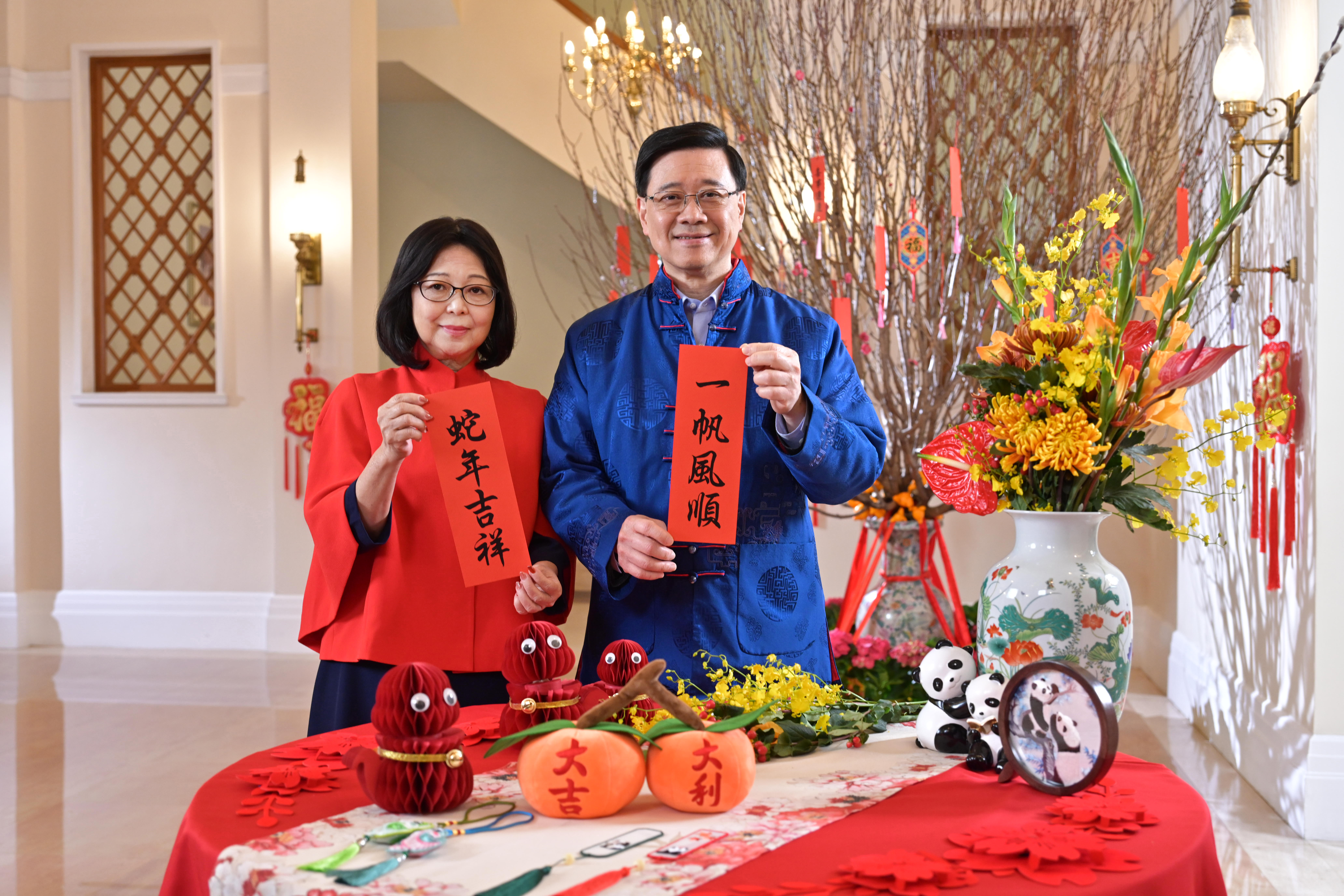 李家超說,慶祝農曆新年是我們最開心的時刻,與家人、朋友相聚,一起忙着辦年貨、買年花,為家裏迎接喜慶新春做好準備。香港喜事連連,去年國家送贈了兩隻可愛大熊貓給我們,而在香港出世的大熊貓寶寶,亦都會在2月中和大家見面。