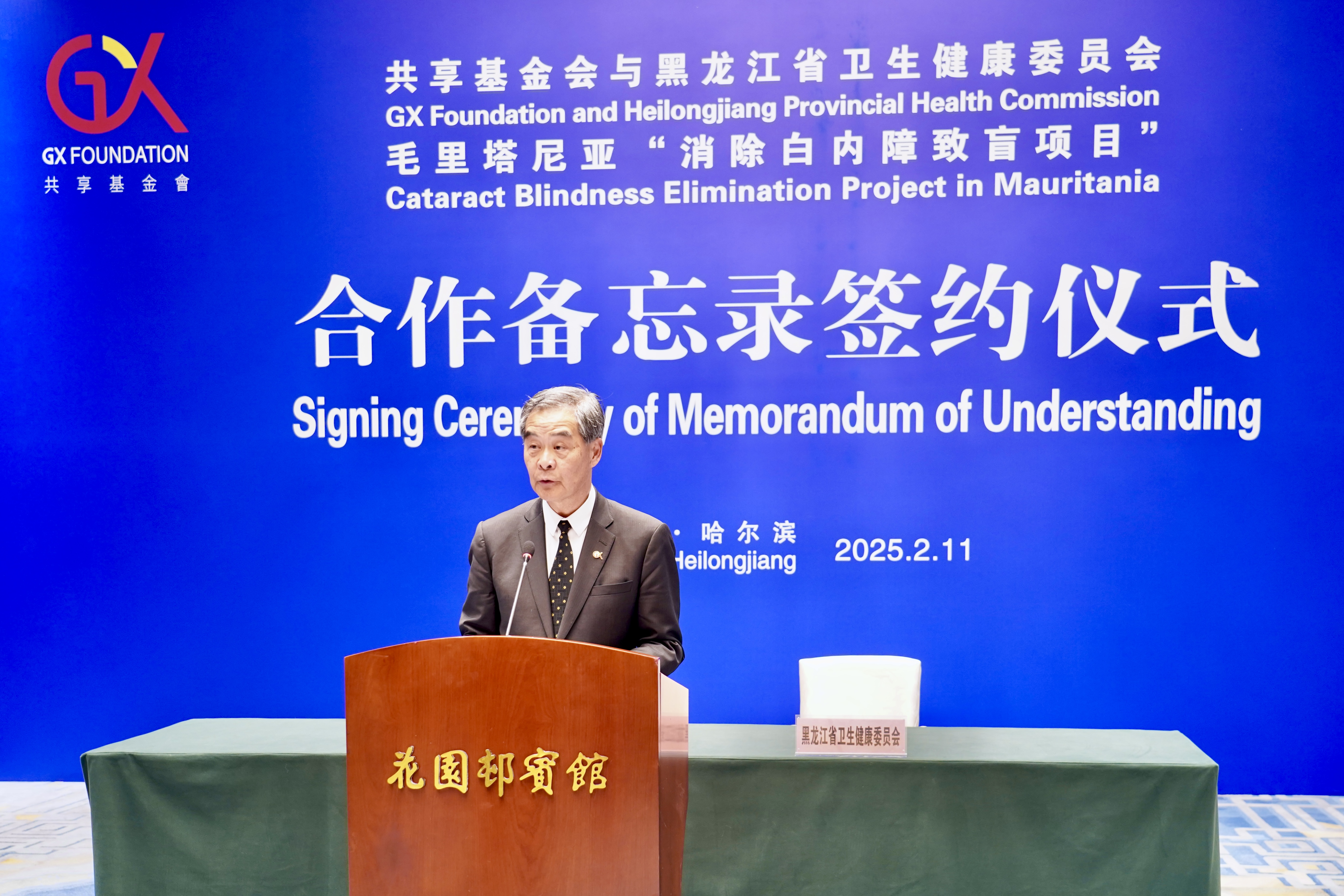 基金會與黑龍江省衞健委首份合作備忘錄於2023年1月簽署,正式開啟雙方在毛里塔尼亞「消除白內障致盲項目」上的合作。自2023年10月以來,黑龍江省衞健委派出7批醫療隊,遠赴毛里塔尼亞首都努瓦克肖特執行消除白內障致盲項目。至去年12月,首階段項目圓滿結束。手術車先後停駐於三家首都醫院,醫療隊為超過8,000名患者提供了眼睛檢查,並成功實施了1,900例免費白內障手術,得到當地民眾的高度評價。