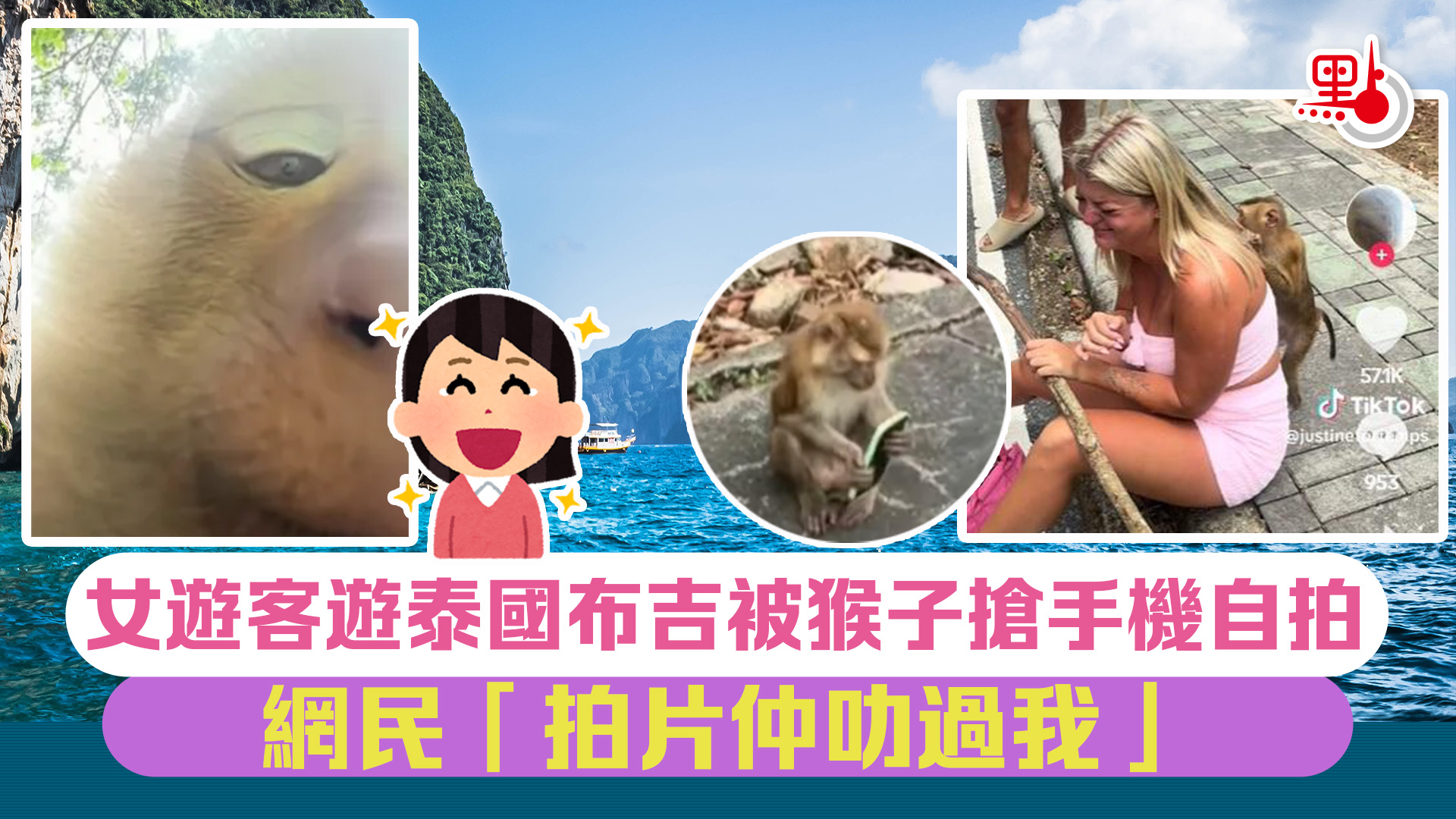 女遊客泰國被猴子搶手機自拍 網民「拍片仲叻過我」