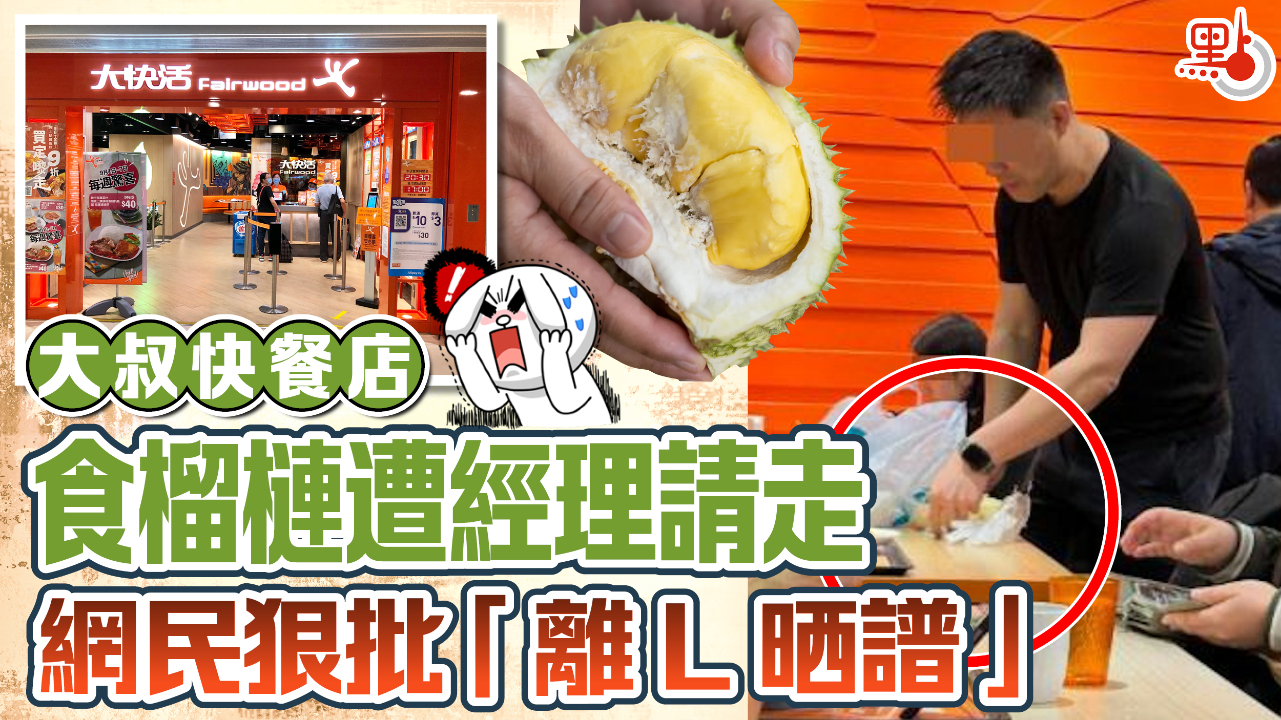 大叔快餐店食榴槤遭經理請走 網民狠批「離L晒譜」