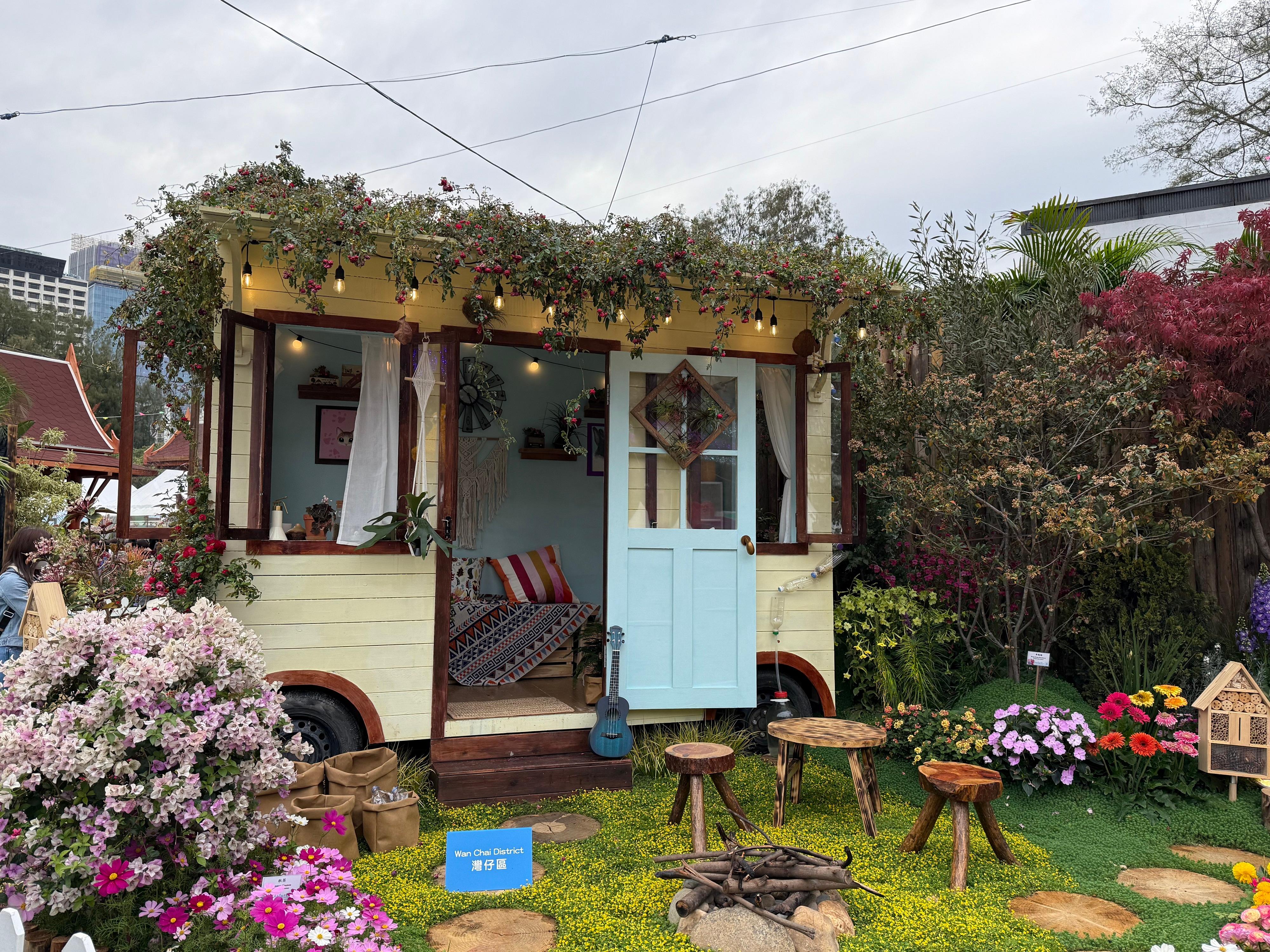 灣仔區的「浪遊逸趣」園圃的設計以郊遊為主題,顯出與家人和朋友郊遊之樂。園內佳木蘢蔥,滿目芳菲,並擺置花藝房車、露營小桌,人在旅途,悠然自得。
