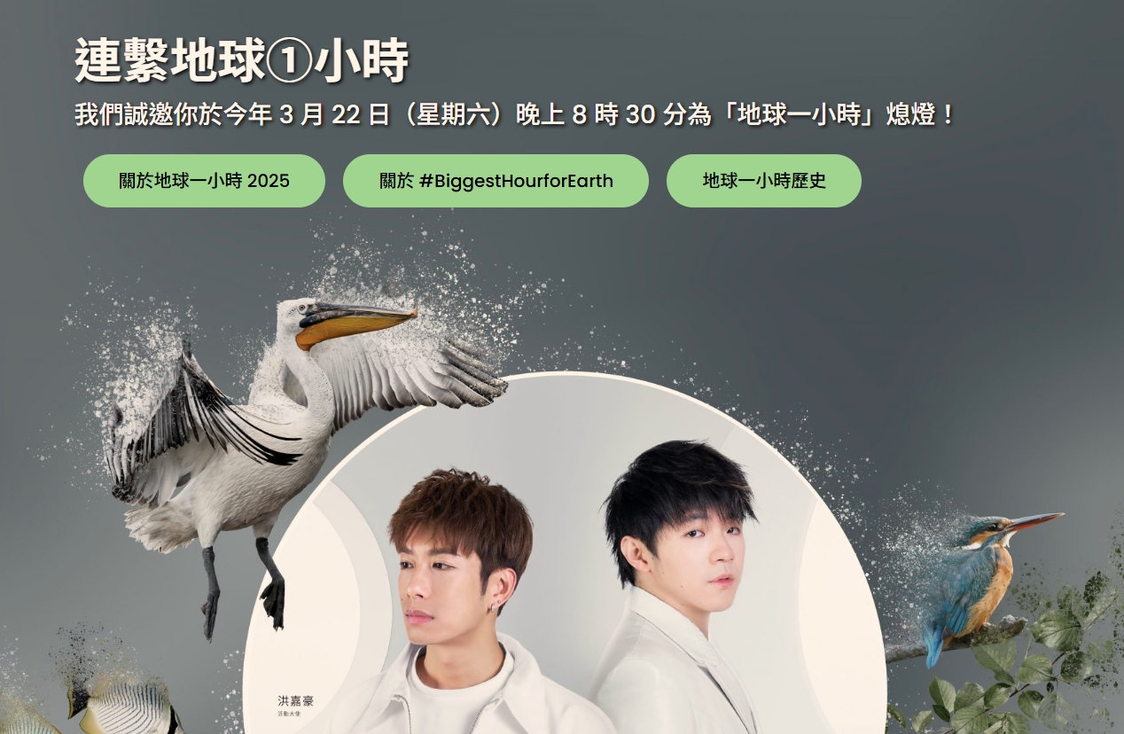 「地球一小時」為WWF舉辦的環保行動,呼籲全球各地於每年3月最後一個(或第四個)星期六晚間8點30分至9點30分,同步關掉非必要的燈及電器,以喚起對氣候變遷和環境保護的重視。