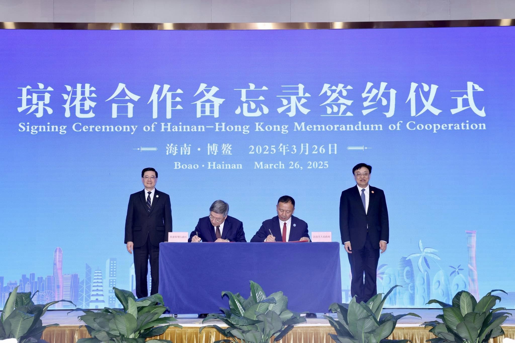 瓊港合作備忘錄簽約 李家超:本港專業服務界獲更多機會