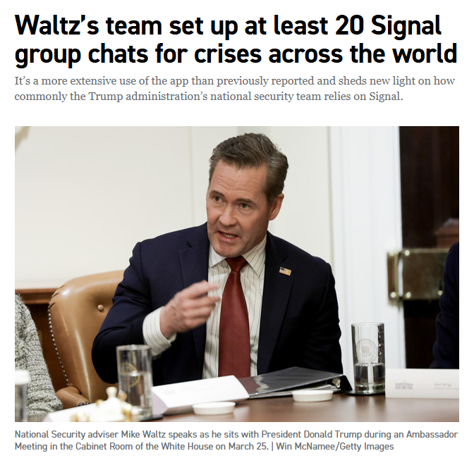 《政治報》認為,相關現象比此前報道的更為廣泛,「反映了特朗普政府國家安全團隊對Signal軟件的依賴」。