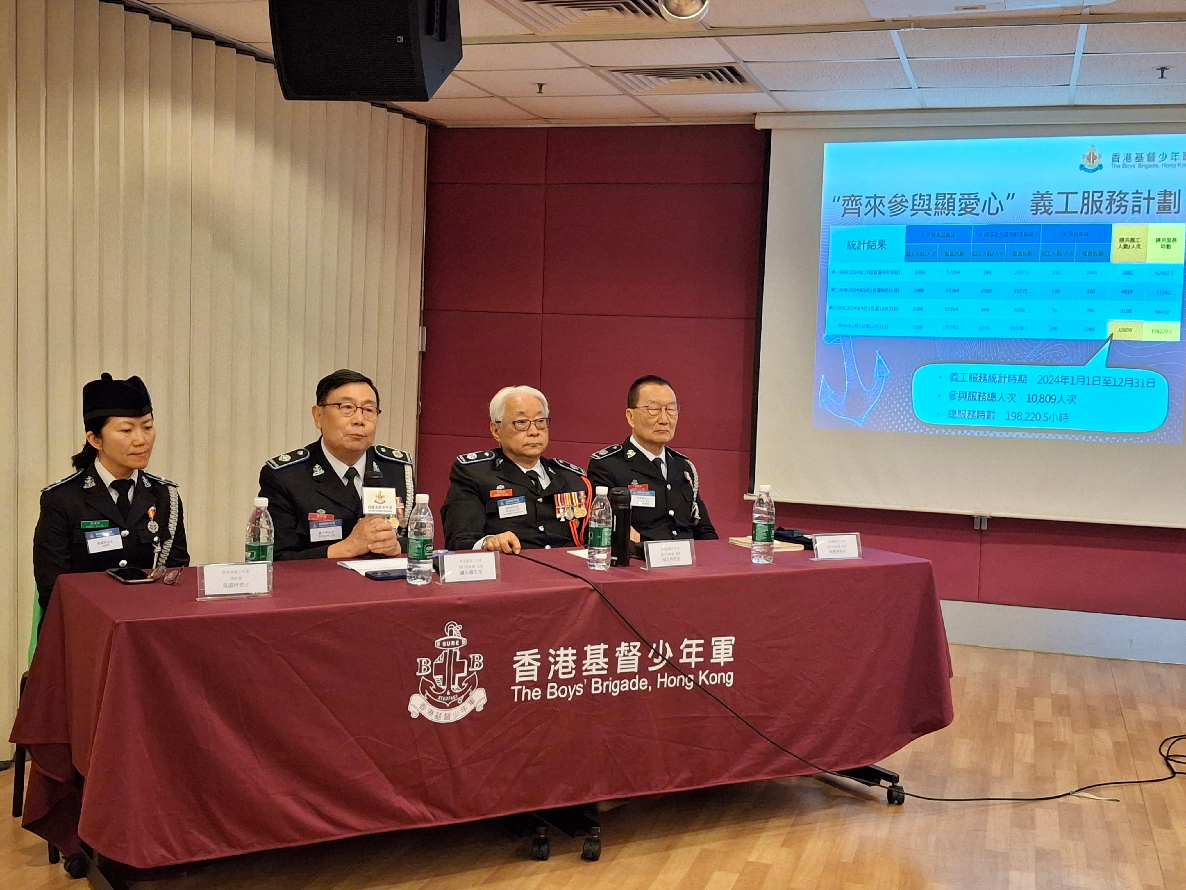 基督少年軍日前舉行「65周年齊來參與顯愛心義工服務計劃」分享會,公布計劃成果和隊員義務工作活動分享。在收集各分隊成員於2024年的服務時數,包括分隊導師恒常集隊時數、總部及分區的活動及訓練時數,以及分隊的其他服務時數,統計出全年參與義工服務的總人次達一萬人次,總服務時數更達19.8萬多小時,較原定目標的6.5萬小時,多出三倍。
