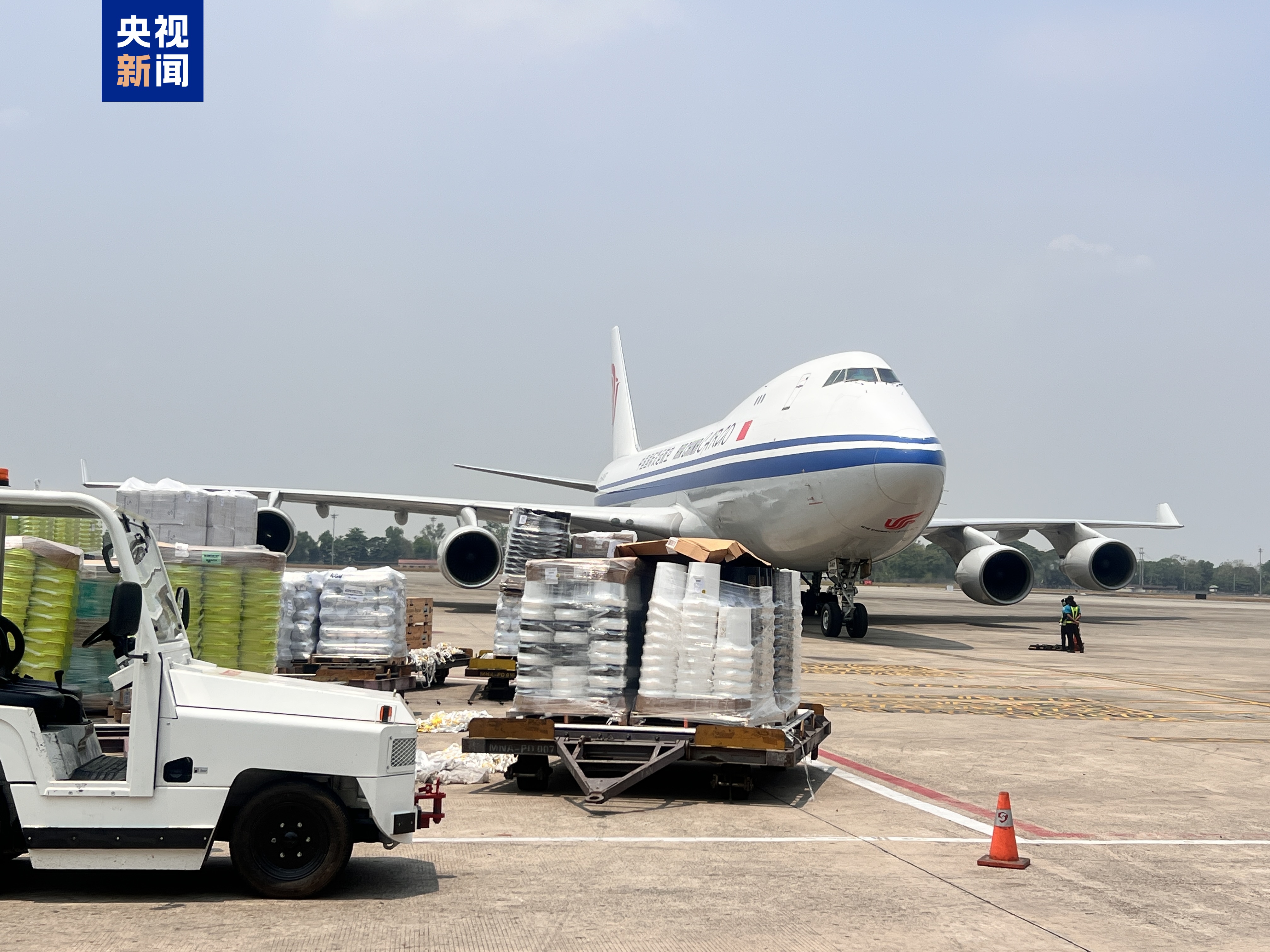 【點新聞報道】據央視新聞報道,當地時間4月9日12時30分左右,中國政府援緬第五批抗震救災物資抵達緬甸仰光。第五批物資主要包括266頂帳篷 、20000個蚊帳、9000塊防水布、2000箱即食麵等,總重超過91噸。