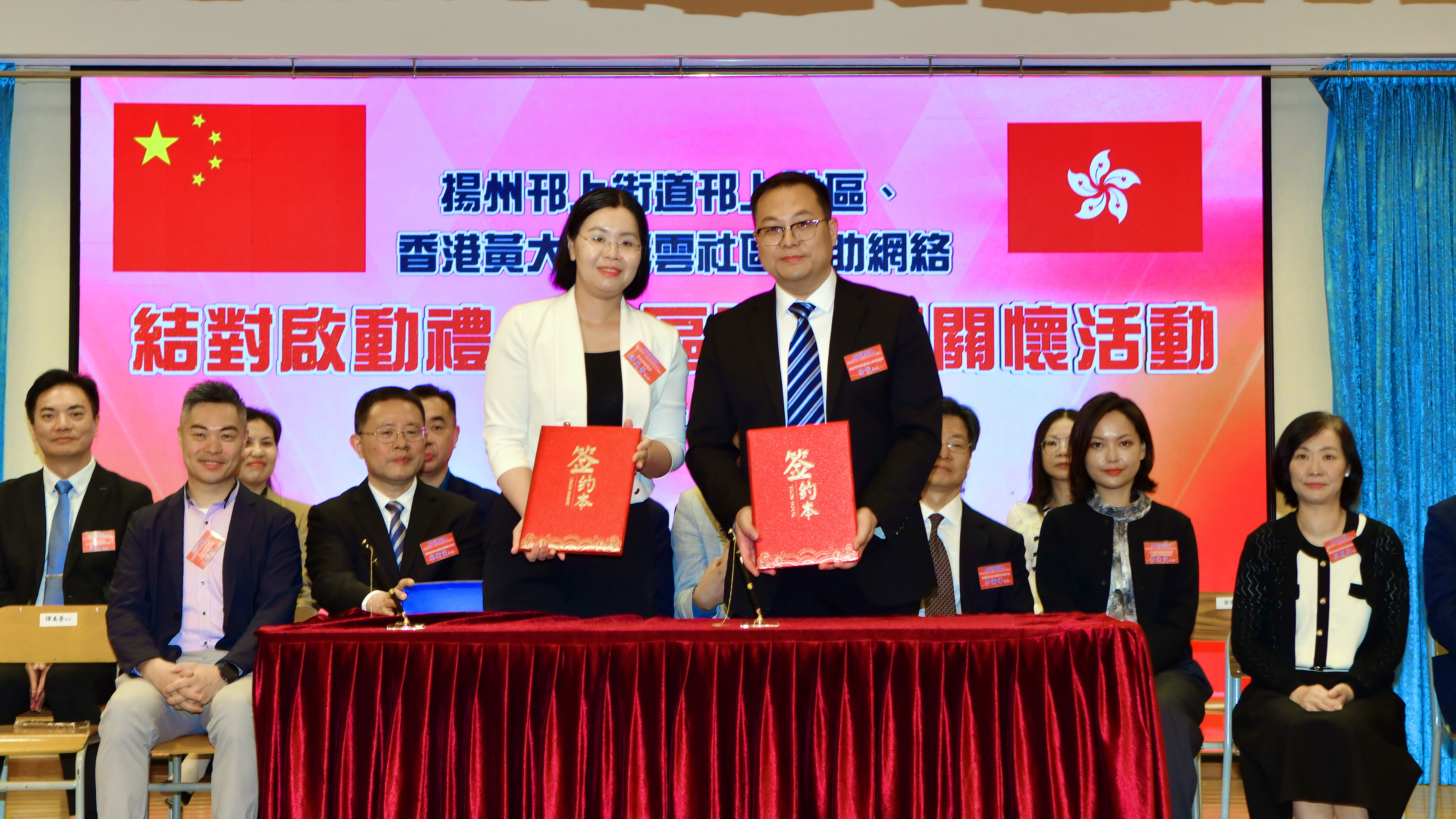 【點新聞報道】4月10日上午,江蘇省揚州市邗江區邗上街道邗上社區與香港黃大仙區彩雲社區互助網絡在彩雲聖若瑟小學禮堂成功舉辦「結對共建啟動儀式暨社區愛心顯關懷活動」。活動以文化為紐帶、以民生為落腳點,推動兩地社區治理經驗互學互鑒,為深化內地與香港基層交流注入新動能。