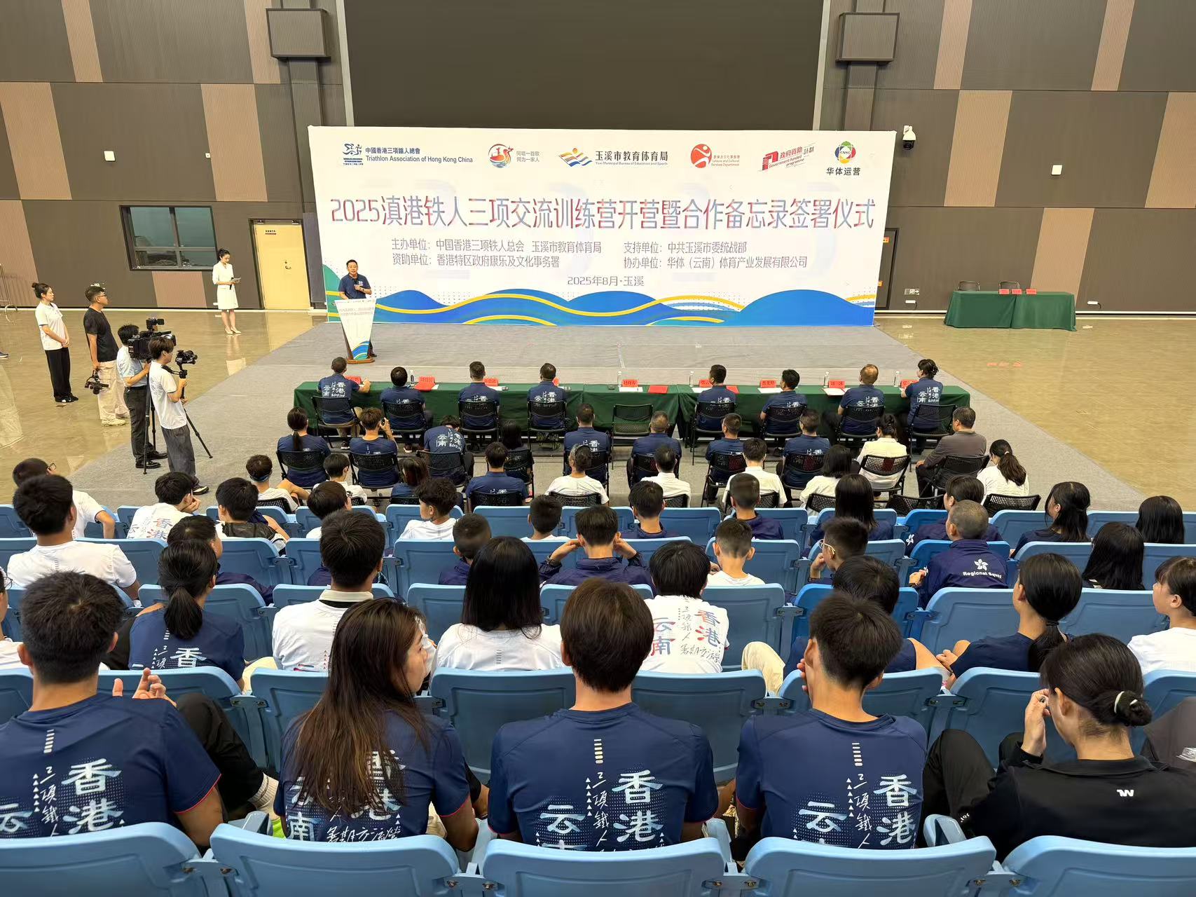 【點新聞報道】2025滇港鐵人三項交流訓練營昨日(5日)在雲南玉溪正式開營,同期舉行合作備忘錄簽署儀式。此次活動由中國香港三項鐵人總會與玉溪市教育體育局聯合主辦,60餘名滇港青年運動員將在為期兩周的行程中,開展高原訓練與文化交流活動。雙方更計劃以玉溪高原體育運動中心為依託,共建香港鐵人三項運動高原訓練基地,為兩地體育合作搭建長效平台。