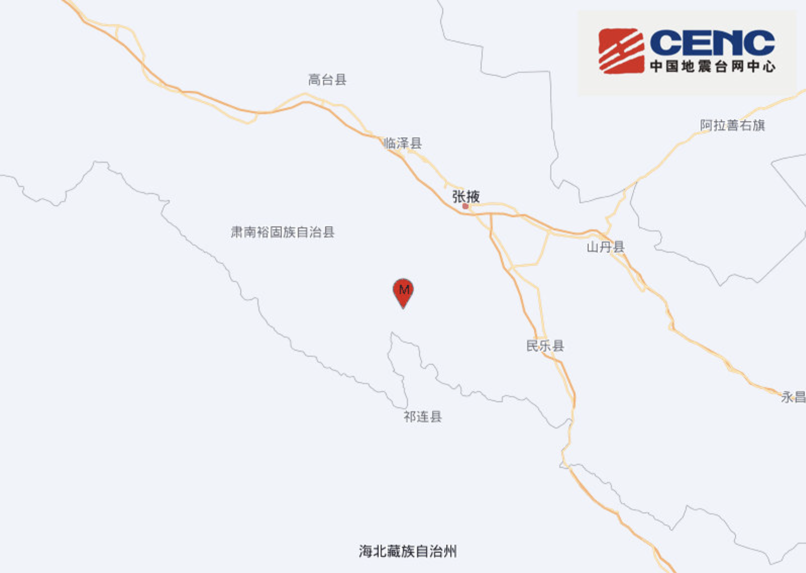 【點新聞報道】中國地震台網正式測定:今日(6日)下午14時20分在甘肅張掖市肅南縣(北緯38.59度,東經100.17度)發生3.0級地震,震源深度8千米。