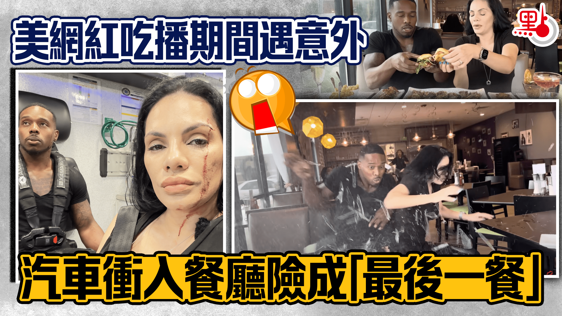 美網紅吃播期間遇意外 汽車衝入餐廳險成「最後一餐」