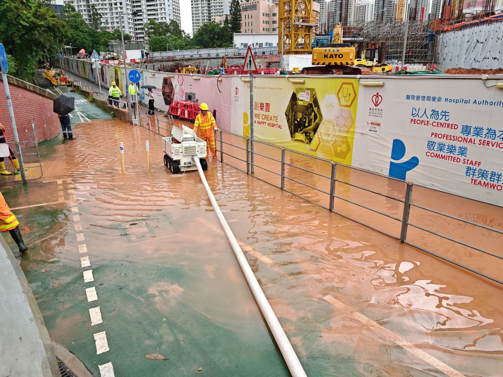 渠務署指,多年來一直採用「防洪三招」,即截流、蓄洪及疏浚,建造了四條共21公里長的雨水排放隧道、五個總容量共250,000立方米的地下蓄洪池,及超過100公里的河道治理工程。這些大型防洪設施在風暴期間發揮重要作用,默默守護着市民,並見證多年來香港不斷的發展和進步,將今次風暴期間發生嚴重水浸的風險大幅減低。