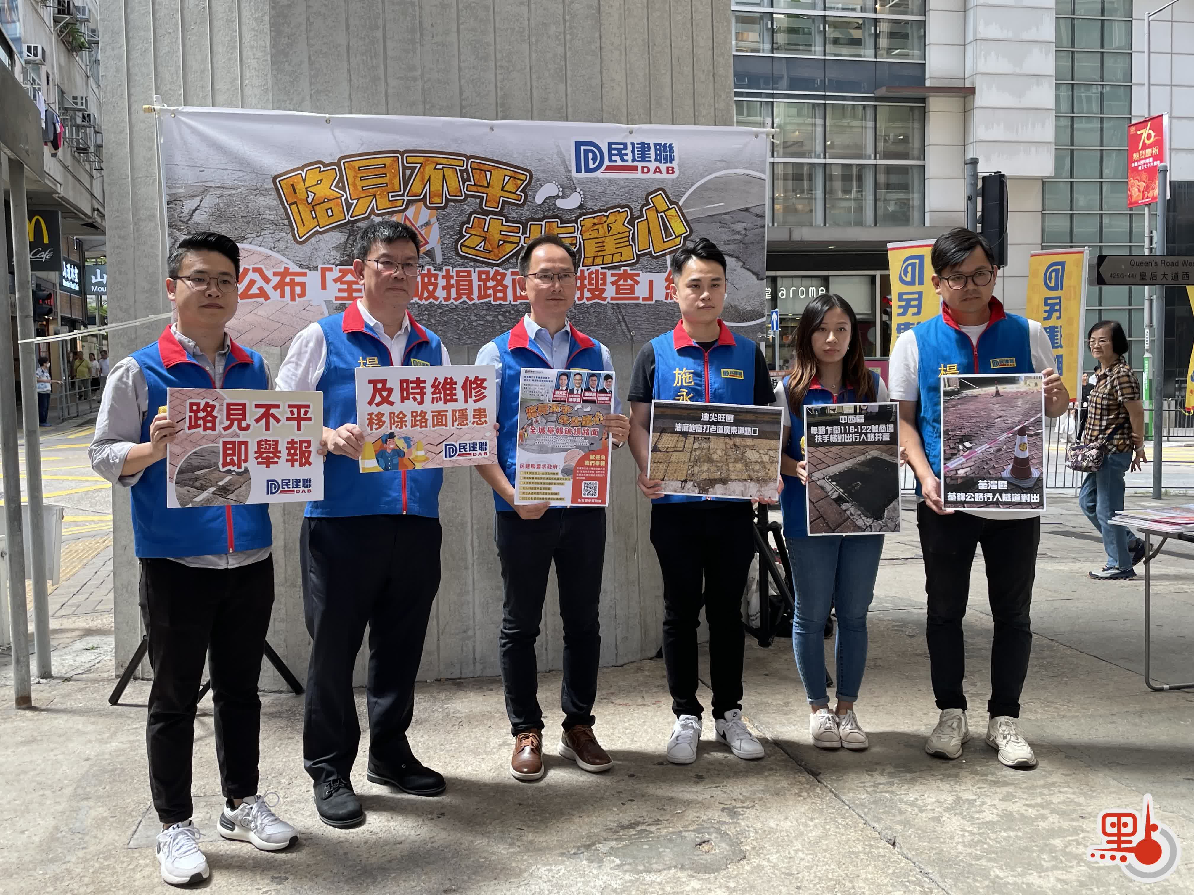 【點新聞報道】本港路面凹凸不平、瀝青飛濺、路磚鬆脫等情況不時出現,或造成居民出行安全風險。民建聯港島西立法會議員陳學鋒聯同中西區區議員楊學明、楊開永、劉天正、施永泰、張嘉恩今日(12日)召開記者會,公布「全港破損路面大搜查」結果。