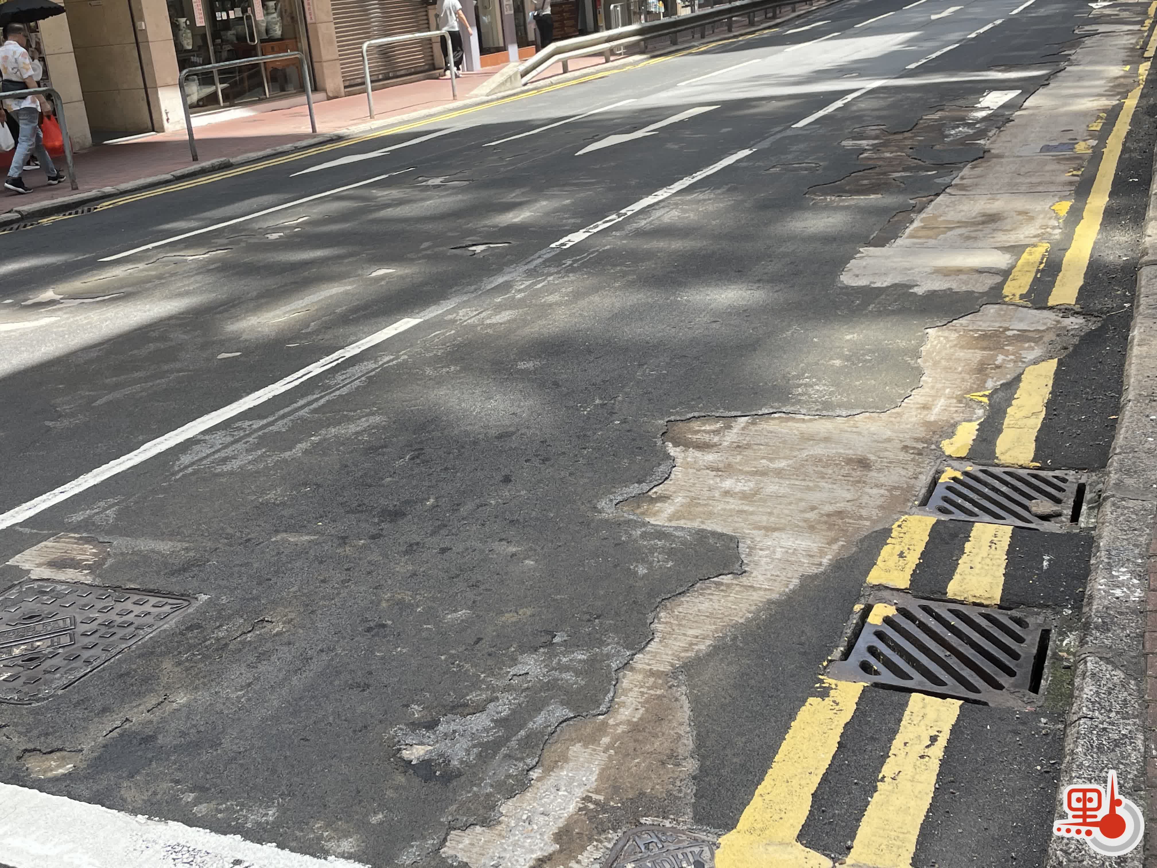 此外,行車路面亦有道路凹凸不平、破裂的情況。張嘉恩提及較嚴重的地點,包括皇后大道中244號近樂古道路面,及德輔道中路段等。