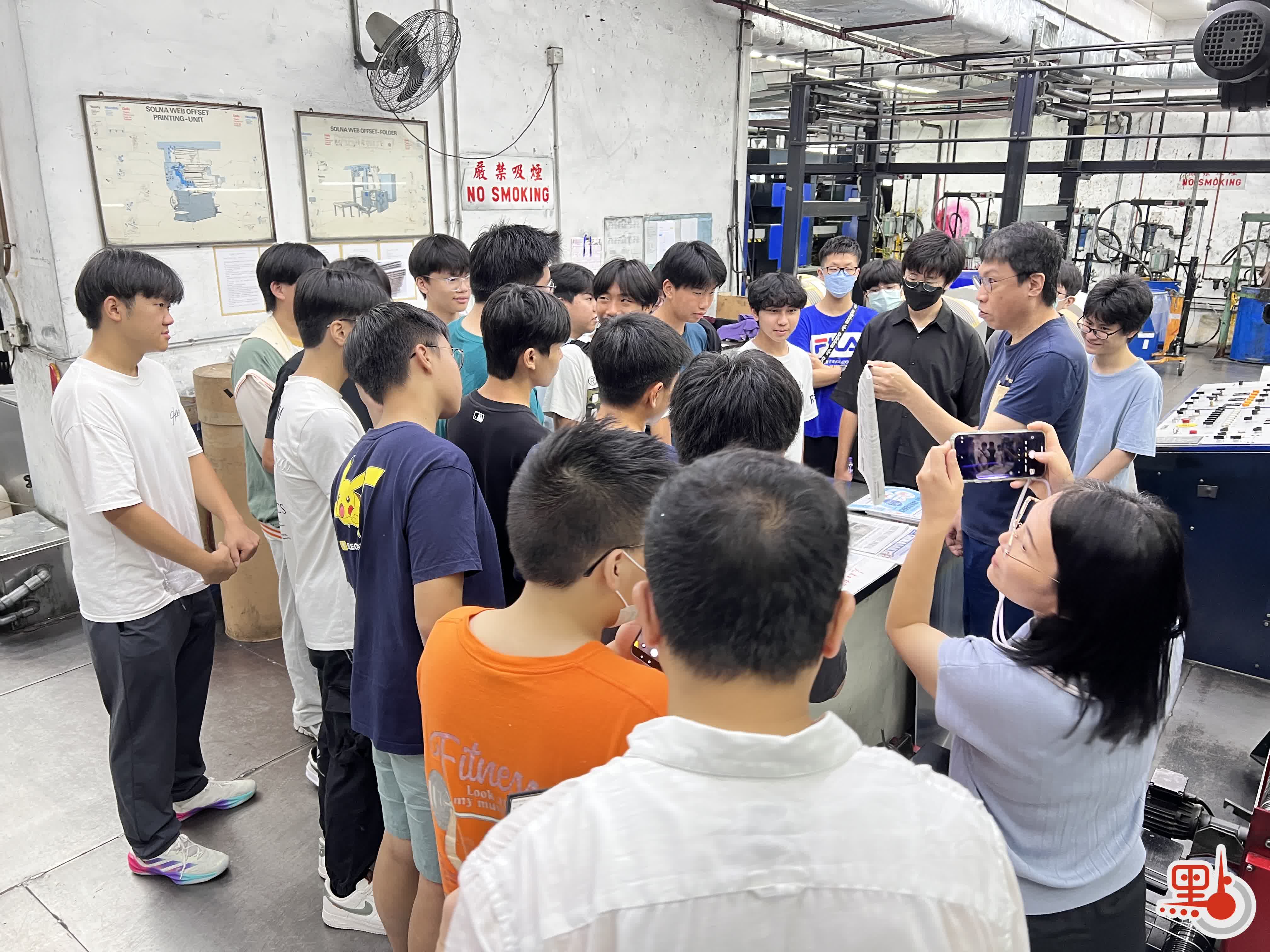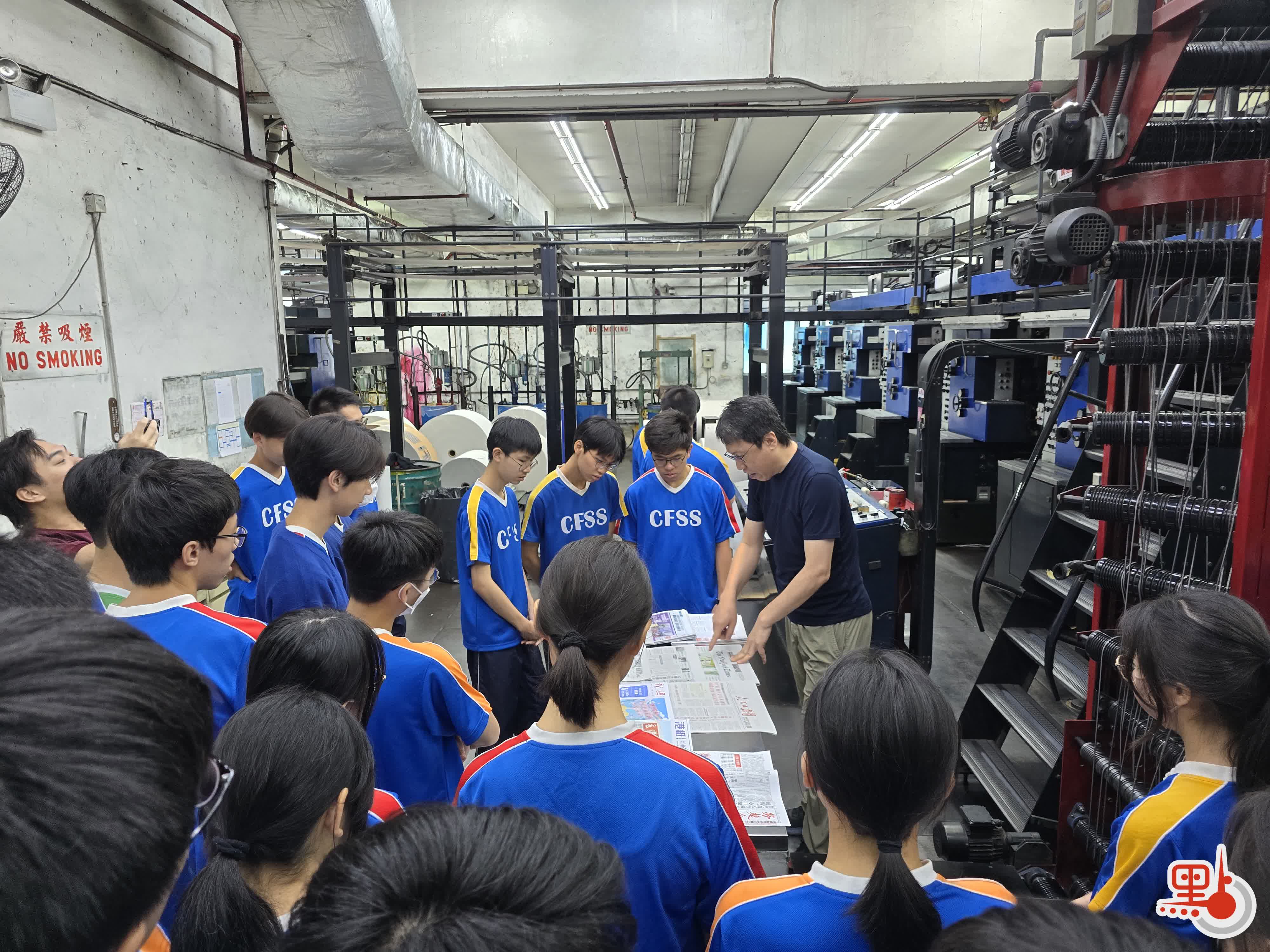 活動首站來到集團現代化印刷廠房。集團三友印務副人事行政經理臧志羽以生動的語言講解高速印刷機的彩印原理和過程,包括紙張選擇。香港仔工業學校的同學們在筆記本上認真記錄。中華基金中學的同學們親手觸摸還帶着溫度的報紙,對油墨速乾技術嘖嘖稱奇。工作人員更透露,為保障報紙準時送達,夜班工人需要在凌晨完成全部印刷,同學們對媒體從業者的精神肅然起敬。