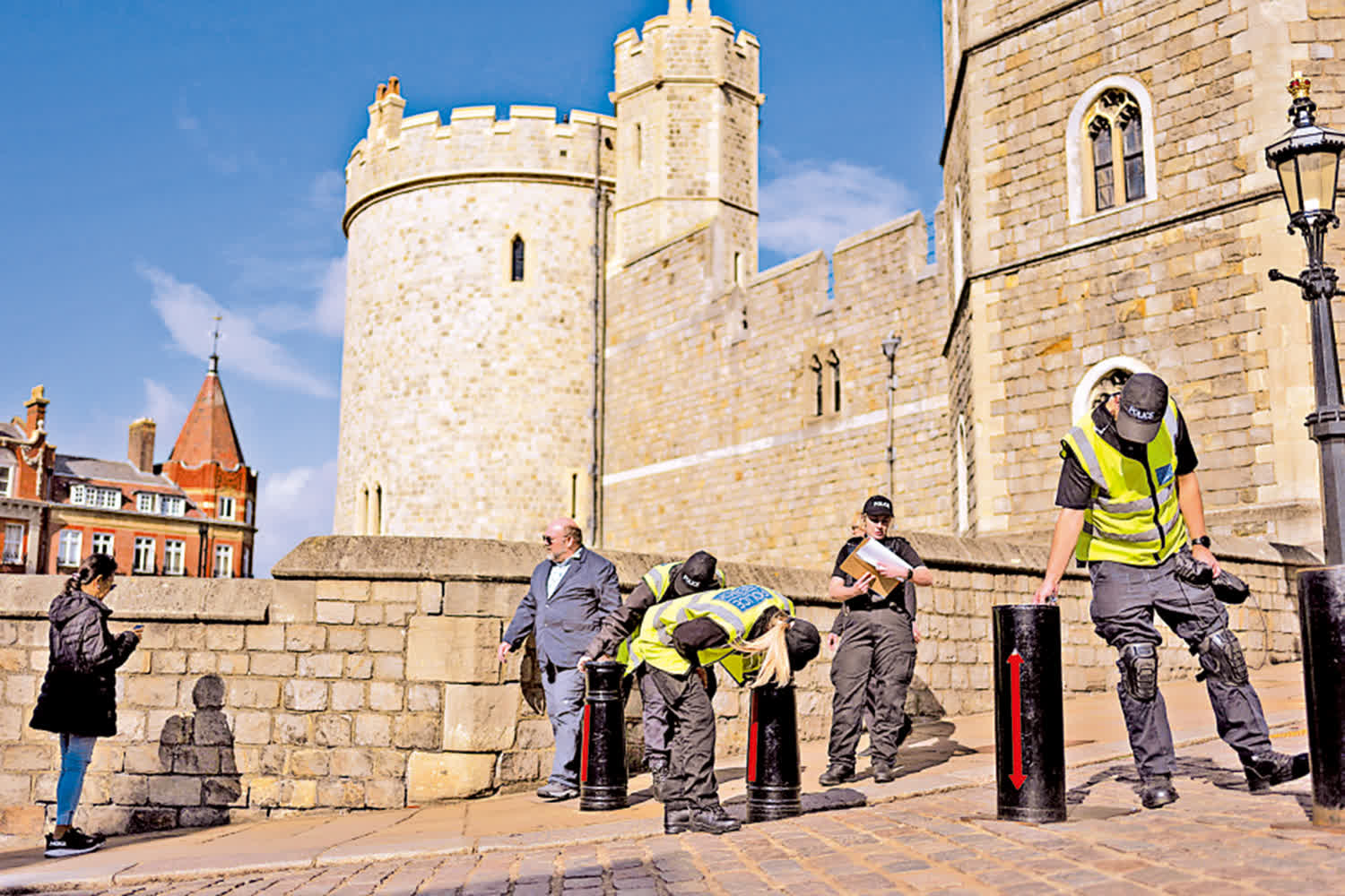英國當局為特朗普準備了2023年查爾斯三世加冕以來最大規模的安保行動,包括在泰晤士河畔部署無人機、狙擊手和騎警。前倫敦警察廳王室保護官員摩根表示,柯克遇刺促使英方加倍警惕,警方狙擊手將佔據所有制高點,以確保特朗普到訪之處「不留任何可以開槍的地方」。英格蘭和威爾士地區僅有4%的警察獲授權攜帶槍支。特朗普訪英期間,該地區的武裝警察將集中部署至倫敦和溫莎。16日至18日,溫莎還將實施臨時空域管制。