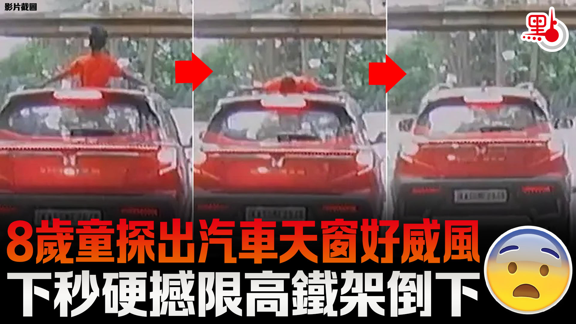 8歲童探出汽車天窗好威風 下秒硬撼限高鐵架倒下