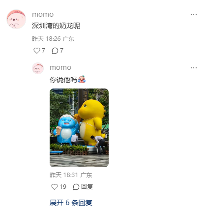 「深圳灣的奶龍呢?」成了社交媒體上的熱門話題。看到奶龍安然無恙的照片,網友們紛紛留言:「奶龍比我們都抗風!」