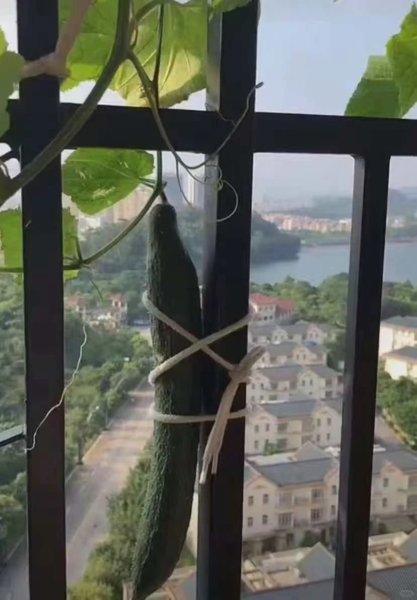 更讓人感動的是,有人把陽台的絲瓜綁在欄桿上!網友笑稱:「不僅要保命,還要保收成!」