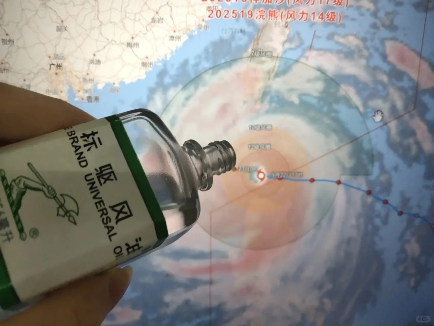 更絕的是,有網友直接拿出「驅風油」對着颱風路徑圖比劃,還一本正經地說:「萬能驅風油,颱風你給我退!」