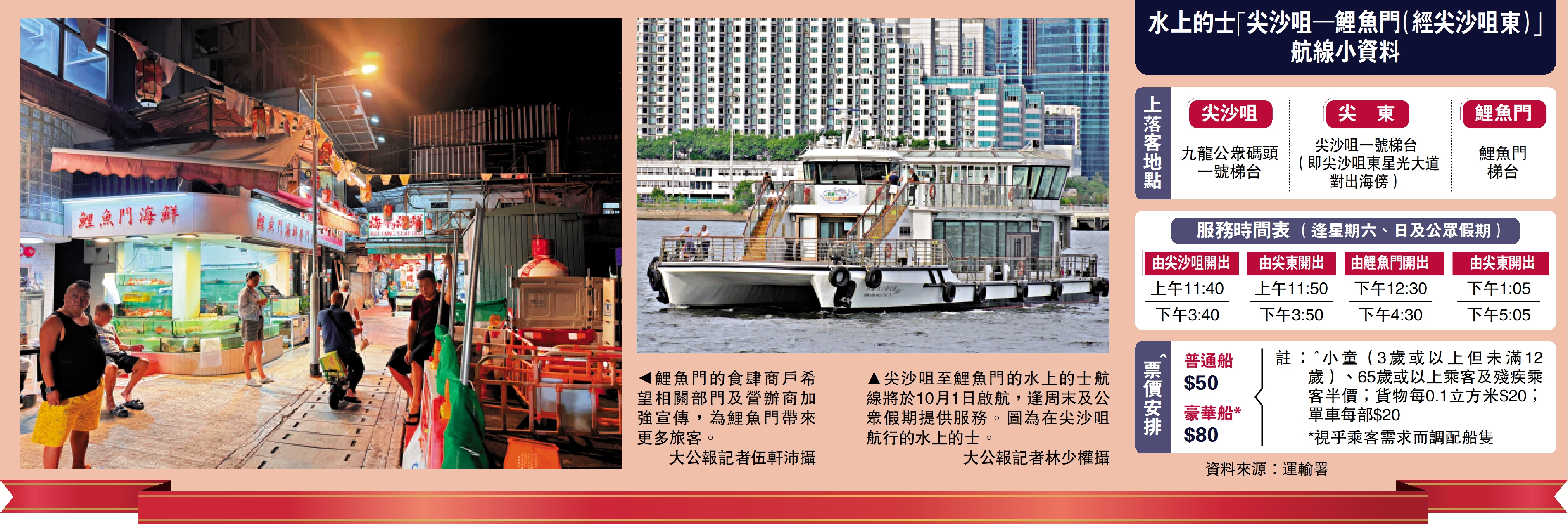 鯉魚門水上的士10·1啟航迎「黃金客」