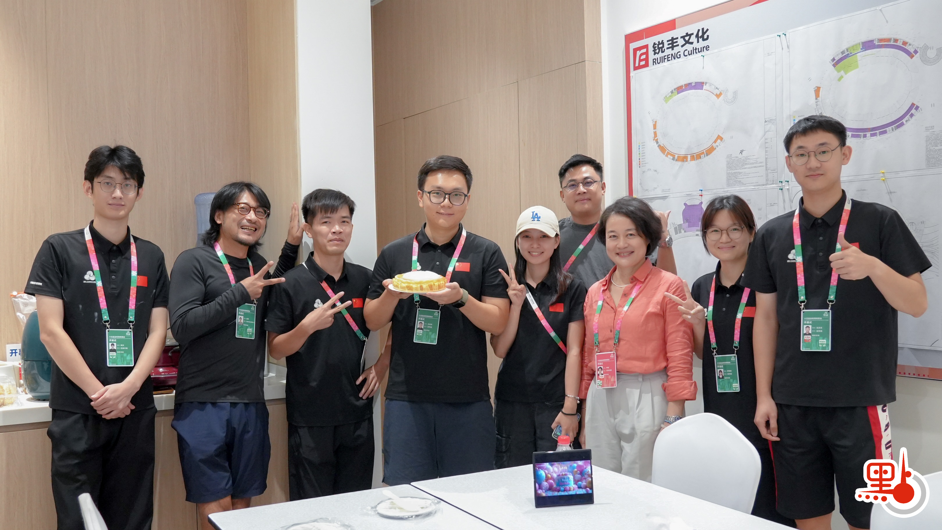 不過,無法和家人團聚,開幕式團隊亦有屬於自己的「溫馨時刻」。10月1日當天恰逢開幕式宣傳團隊攝影助理小關生日,同事們買好了生日蛋糕,忙中抽空給他過了一個特別的生日會。