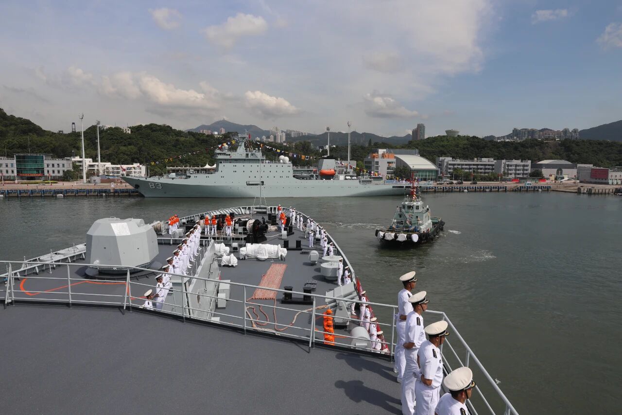 上午8時,戚繼光艦、沂蒙山艦完成出航前的各項準備工作。10時許,駐香港部隊在昂船洲軍營碼頭舉行歡送儀式,83艦編隊指揮員對香港特區政府和民眾的熱情支持表示感謝和敬意。