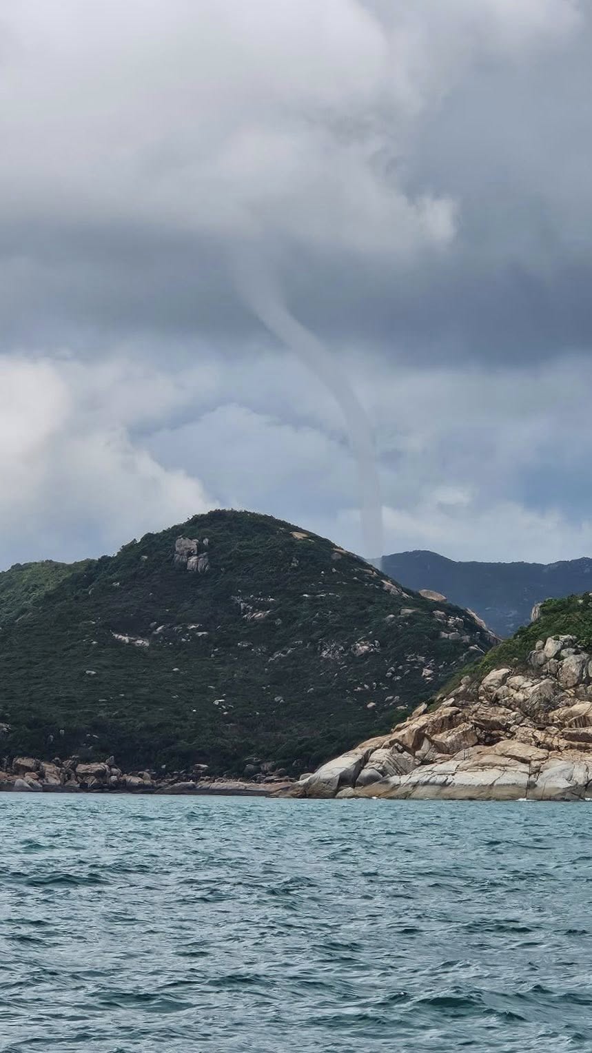 (有片)南丫島下午現水龍捲 水柱蜿蜒入雲場面壯觀
