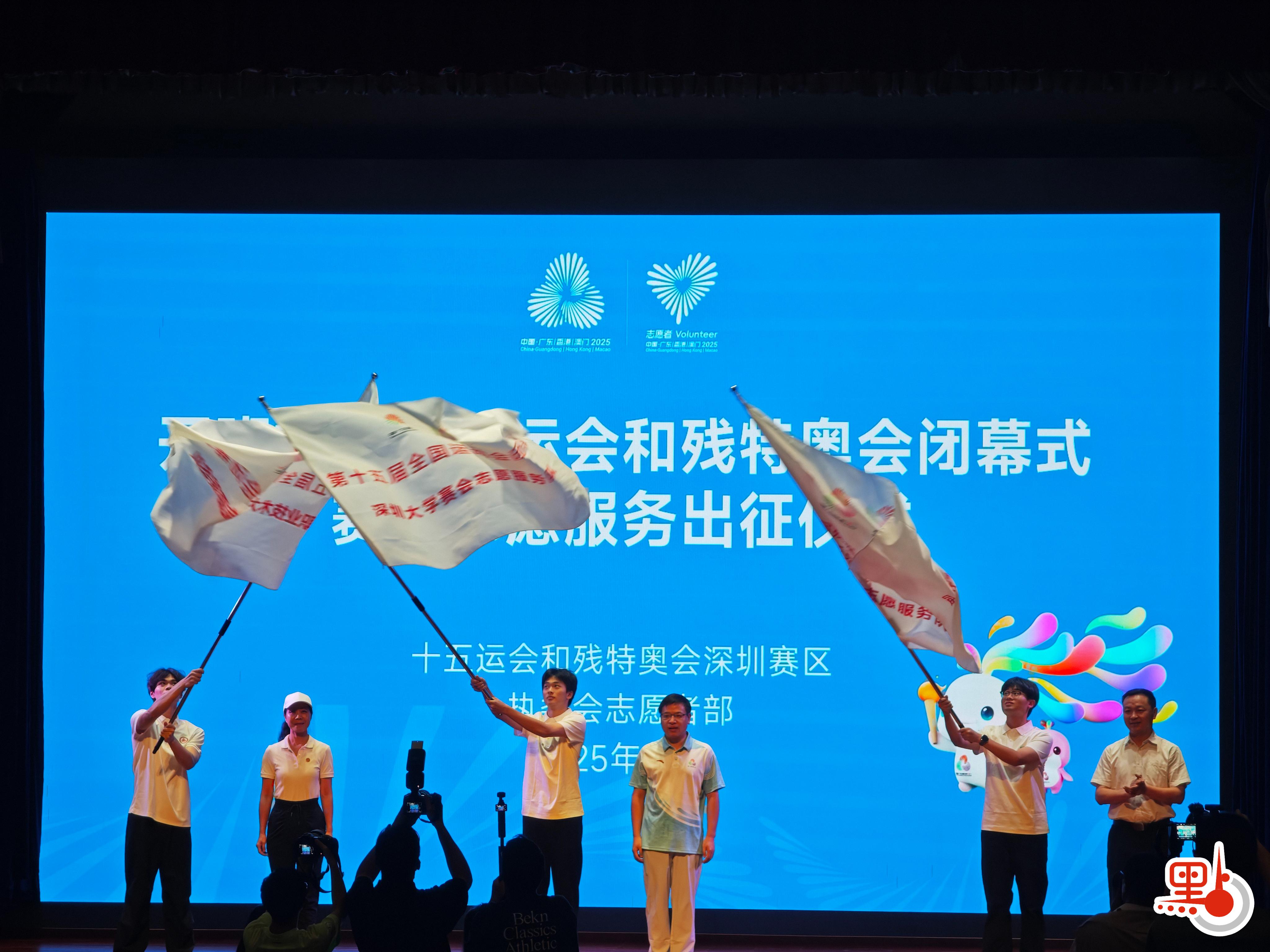 【點新聞報道】十五運會和殘特奧會閉幕式賽會志願服務出征儀式暨骨幹培訓開班式在深圳舉行。現場,十五運會閉幕式深圳大學、深圳職業技術大學賽會志願服務隊,殘特奧會閉幕式深圳大學賽會志願服務隊接過旗幟,開始投入到閉幕式志願服務工作中。